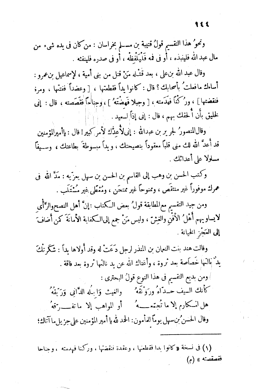 ومن بديع التقسيم فى هذا النوع قول البحترى:
