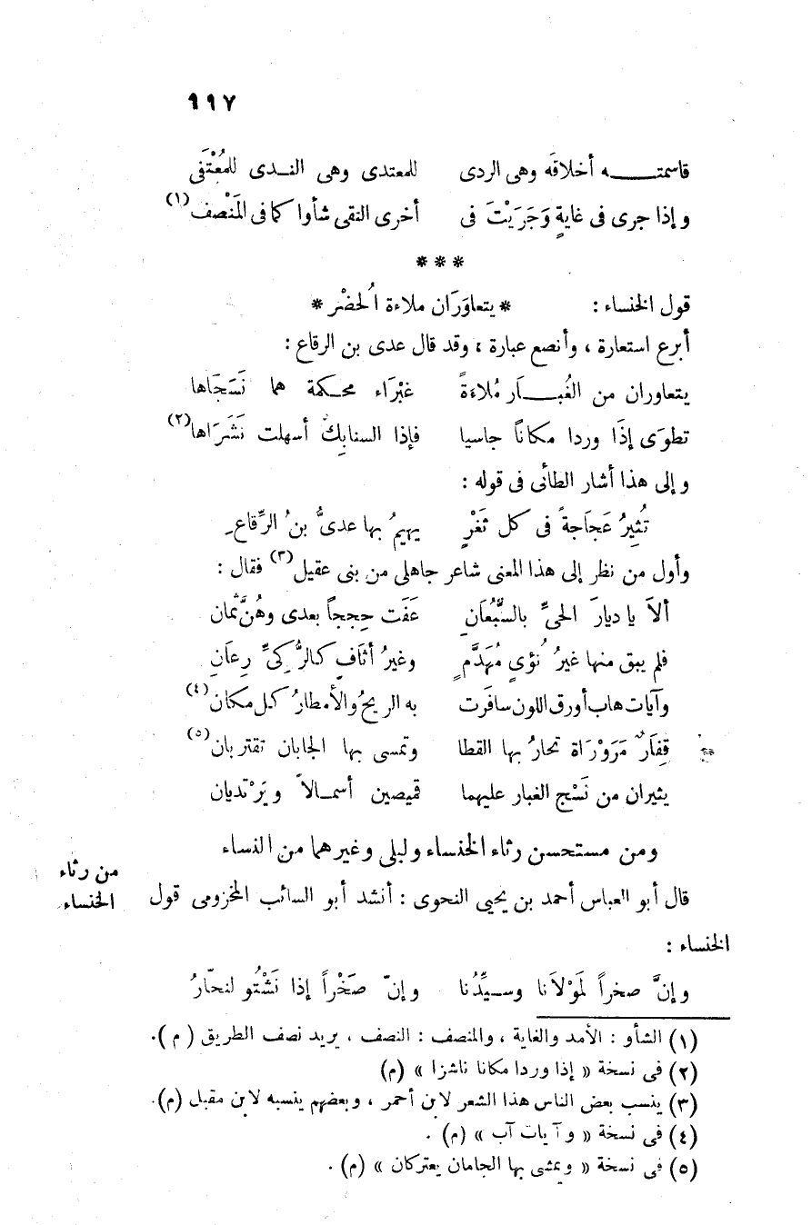 قال أبو العباس أحمد بن يحيى النحوى: أنشد أبو السائب المخزومى قول الخنساء: