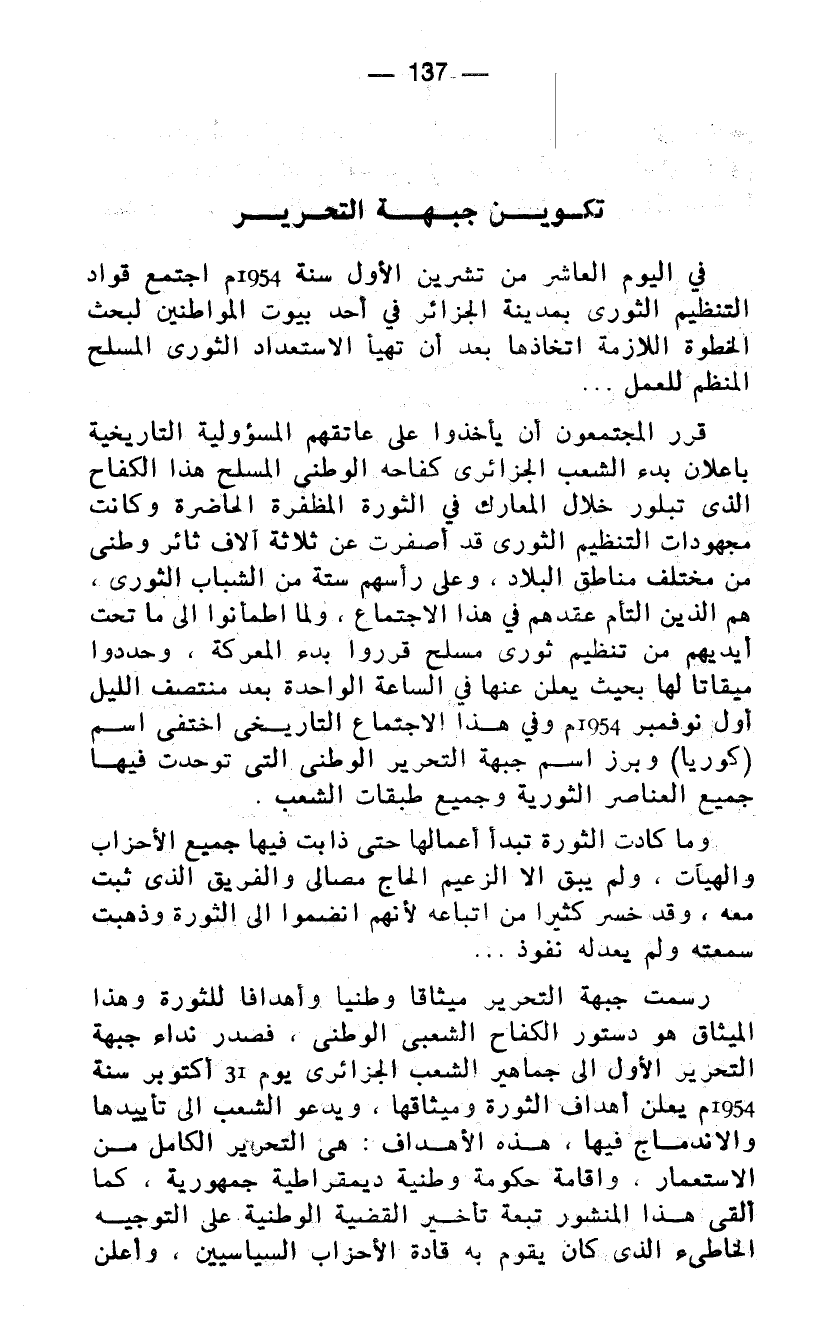 في اليوم العاشر من تشرين الأول سنة 1954م اجتمع قواد التنظيم الثوري بمدينة الجزائر في أحد بيوت المواطنين لبحث الخطوة اللازمة اتخاذها بعد أن تهيأ الاستعداد الثوري المسلح المنظم للعمل ...