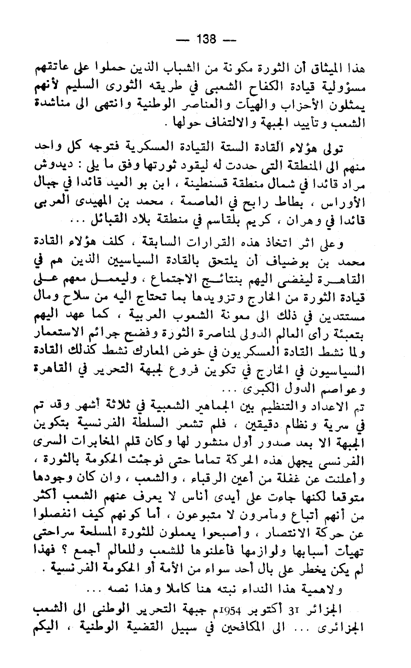 الجزائر 31 أكتوبر 1954م جبهة التحرير الوطني الى الشعب الجزائري ... الى المكافحين في سبيل القضية الوطنية، اليكم
