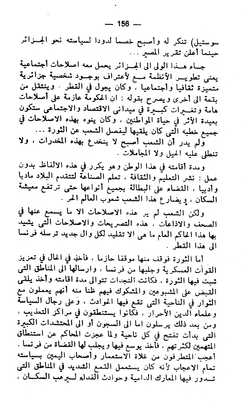 ولكن الشعب لم ير هذه الاصلاحات الا ما يسمع عنها في الصحف والاذاعات، هذه التصريحات والاصلاحات التي يشيد بها هذا الحاكم العام ما هي الا تقليد لكل وال جديد ترسله فرنسا الى هذا القطر.