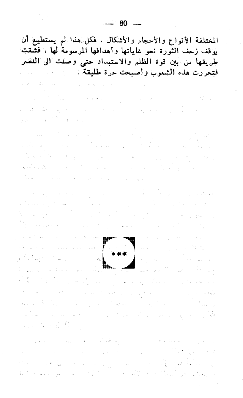 المختلفة الأنواع والاحجام والاشكال، فكل هذا لم يستطع أن يوقف زحف الثورة نحو غاياتها وأهدافها المرسومة لها، فشقت طريقها من بين قوة الظلم والاستبداد حتى وصلت الى النصر فتحررت هذه الشعوب وأصبحت حرة طليقة
