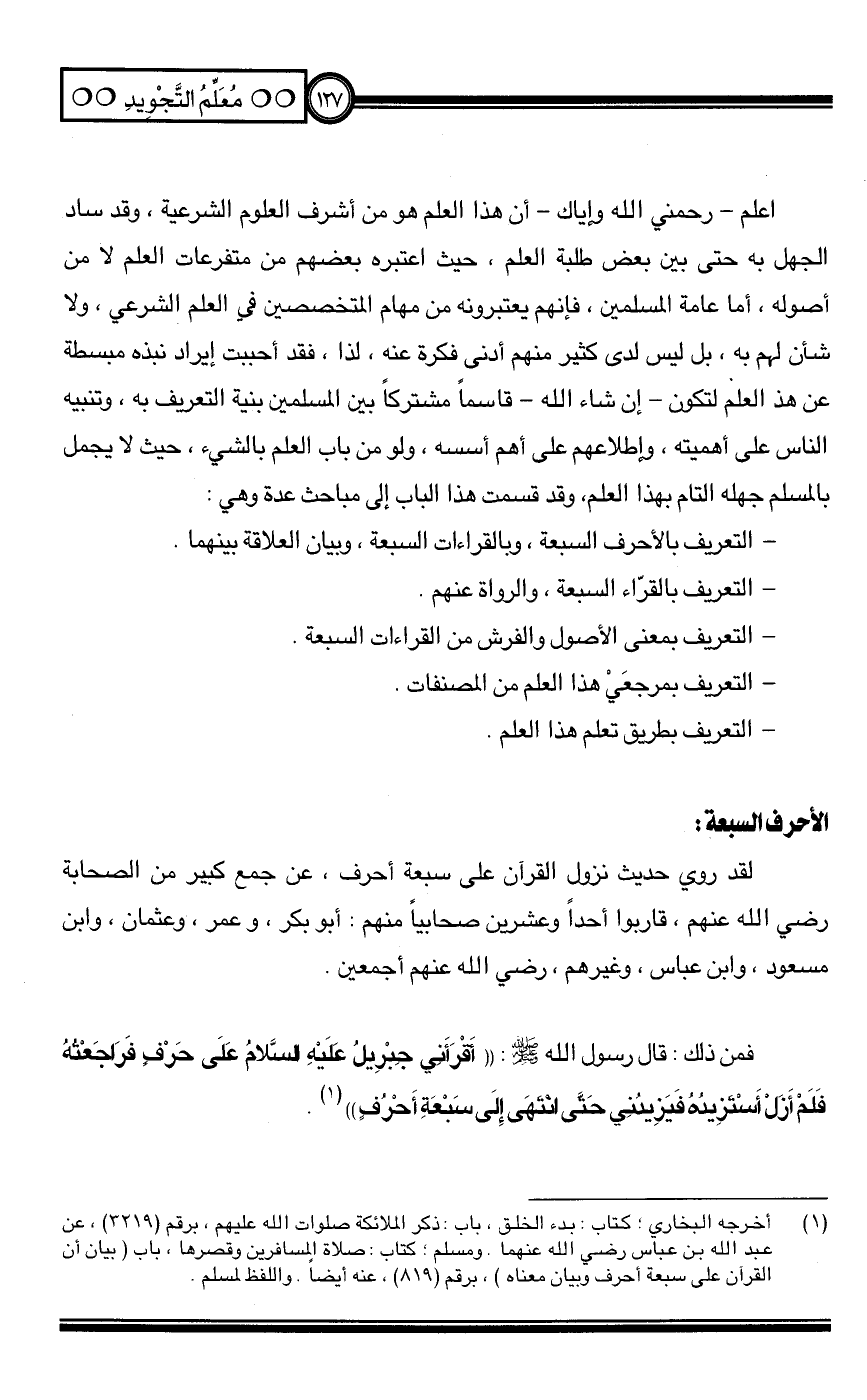 2- ... الوقف التامّ المطلق: وهو الوقف على كلام تمّ معناه، ولم يتعلّق بما بعده لفظاً ولا معنى، ولا يلزم الوقف عليه، بل يَحسُن؛ فيجوز الوقف عليه كما يجوز وصله بما بعده، لكن الوقف أَوْلى.