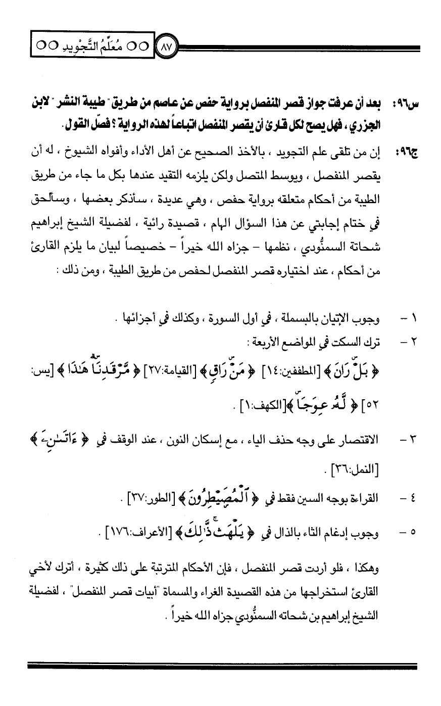 إسكان أولهما، عند حفص. ويشار هنا إلى أن لإدغام المتماثلين عند القراء ثلاثة أنواع: صغير وكبير ومطلق، لا يتسع المقام هنا لتفصيل بها.