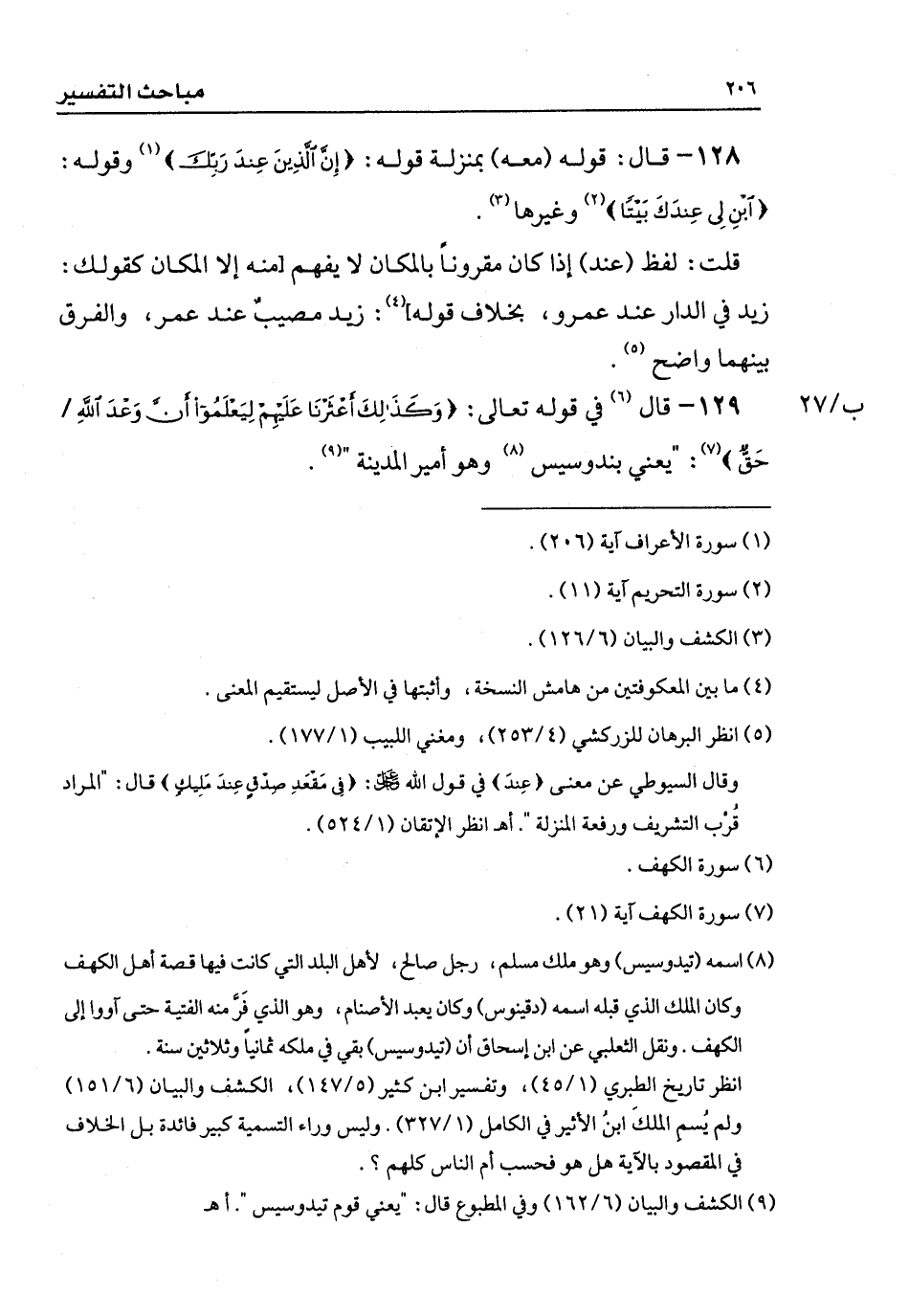 129 - قال في قوله تعالى: {وَكَذَلِكَ أَعْثَرْنَا عَلَيْهِمْ لِيَعْلَمُوا أَنَّ وَعْدَ اللَّهِ حَقٌّ}: " يعني بندوسيس وهو أمير المدينة ".