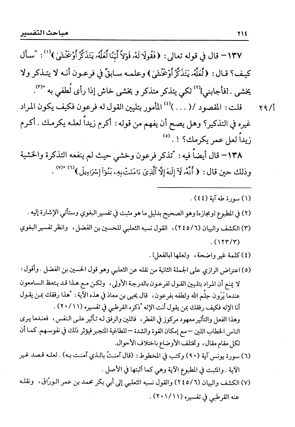 137 - قال في قوله تعالى: {فَقُولَا لَهُ قَوْلًا لَيِّنًا لَعَلَّهُ يَتَذَكَّرُ أَوْ يَخْشَى}: " سأل كيف؟ قال: {لَعَلَّهُ يَتَذَكَّرُ أَوْ يَخْشَى} وعلمه سابق في فرعون أنه لا يتذكر ولا يخشى. [ومجازه] لكي يتذكر متذكر ويخشى خاش إذا رأى لُطفي به ".