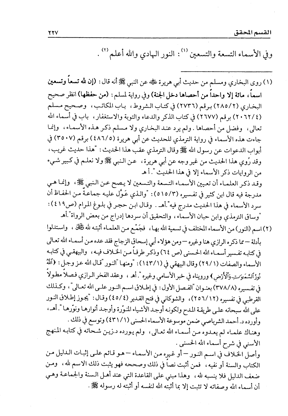 وفي الأسماء التسعة والتسعين: النور الهادي. والله أعلم.