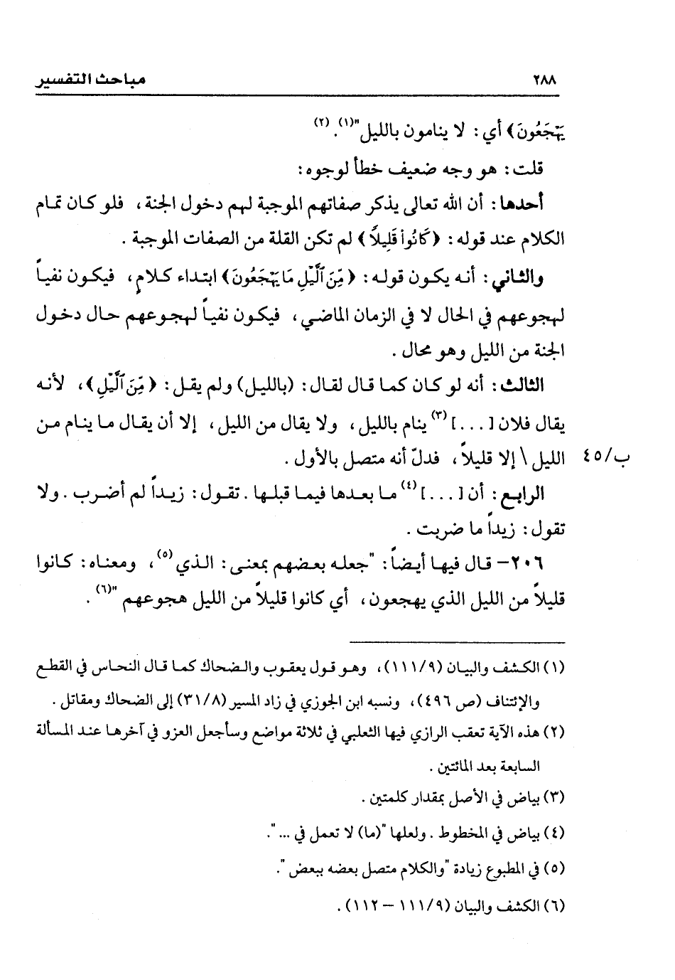 206 - قال فيها أيضاً: جعله بعضهم بمعنى: الذي، ومعناه: كانوا قليلاً من الليل الذي يهجعون، أي كانوا قليلاً من الليل هجوعهم ".