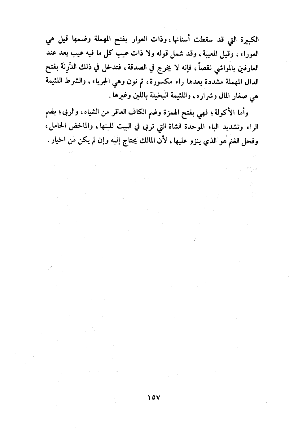 الكبيرة التى قد سقطت أسنانها وذات العور بفتح المهملة وضمها قيل هي العوراء وقيل المعيبة وقد شمل قوله: ولا ذات عيب كل ما فيه عيب يعد عند العارفين بالمواشي نقصا فإنه لا يخرج في الصدقة فتدخل في ذلك الدرنة وهي بفتح الدال المهملة مشددة بعدها راء مكسروة ثم نون وهي الجرباء والشرط اللئيمة هي صغار المال وشراره واللئيمة البخلية باللبن وغيرها.