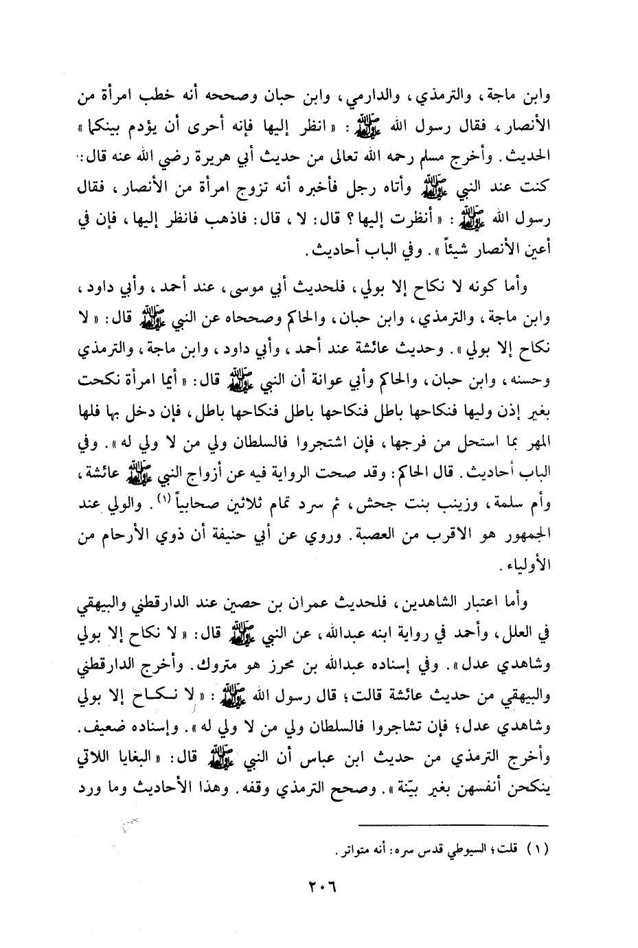 وأما كونه لا نكاح إلا بولي فلحديث أبي موسى عند أحمد وأبي داود وابن ماجه والترمذي وابن حبان والحاكم وصححه عن النبي صلى الله عليه وسلم قال: "لا نكاح إلا بولي" وحديث عائشة عند أحمد وأبي داود وابن ماجه والترمذي وحسنه وابن حبان والحاكم وأبي عوانة أن النبي صلى الله عليه وسلم قال: "أيما امرأة نكحت بغير إذن وليها فنكاحها باطل فنكاحها باطل فنكاحها باطل فإن دخل بعا فلها المهر بما استحل من فرجها فإن اشتجروا فالسلطان ولي من لا ولي له" وفي الباب أحاديث قال الحاكم: وقد صحت الرواية فيه عن أزواج النبي صلى الله عليه وسلم عائشة وأم سلمة وزينب بنت جحش ثم سرد تمام ثلاثين والولي عند الجمهور هو الأقرب من العصبة ورورى عن أبي حنيفة أن ذوى الأرحام من الأولياء.
