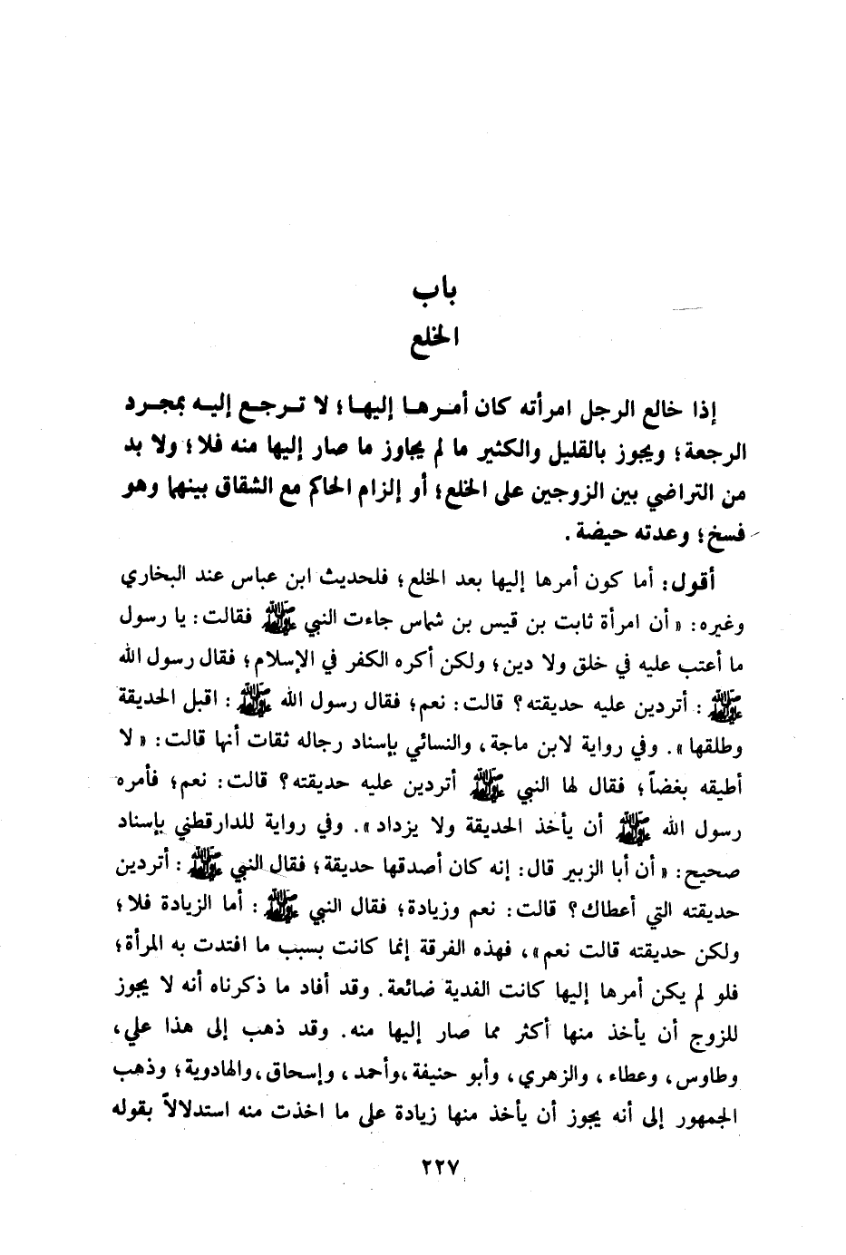 أقول: أما كون أمرها إليها بعد الخلع فلحديث ابن عباس عند البخاري وغيره أن امرأة ثابت بن قيس بن شماس جاءت النبي صلى الله عليه وسلم فقالت: يا رسول الله ما أعتب عليه في خلق ولا دين ولكن أكره الكفر في الإسلام فقال رسول الله صلى الله عليه وسلم: "أتردين عليه حديقته" قالت نعم: فقال رسول الله صلى الله عليه وسلم "اقبل الحديقة وطلقها" وفي رواية لابن ماجه والنسائي بإسناد رجاله ثقات أنها قالت: "لا أطيقه بغضا فقال لها النبي صلى الله عليه وسلم أتردين عليه حديقته قالت له نعم: فأمره رسول الله صلى الله عليه وسلم أن يأخذ الحديقة ولا يزداد" وفي رواية للدارقطني بإسناد صحيح أن أبا الزبير قال: إنه كان أصدقها حديقة فقال: النبي صلى الله عليه وسلم أتردين حديقته التي أعطاك؟ قالت: نعم وزيادة فقال: النبي صلى الله عليه وسلم أما الزيادة فلا ولكن حديقته قالت: نعم" فهذه الفرقة إنما كانت بسبب ماافتدت به المرأة فلو لم يكن أمرها إليها كانت الفدية ضائعة وقد أفاد ماذكرناه أنه لايجوز للزوج أن يأخذ منها اكثر مما صار إليها منه وقد ذهب إلى هذا على وطاوس وعطاء والزهري وأبو حنيفة وأحمد وإسحاق والهادوية وذهب الجمهور إلى أنه لايجوز أن يأخذ منها زيادة على ما أخذت منه استدلالا بقوله