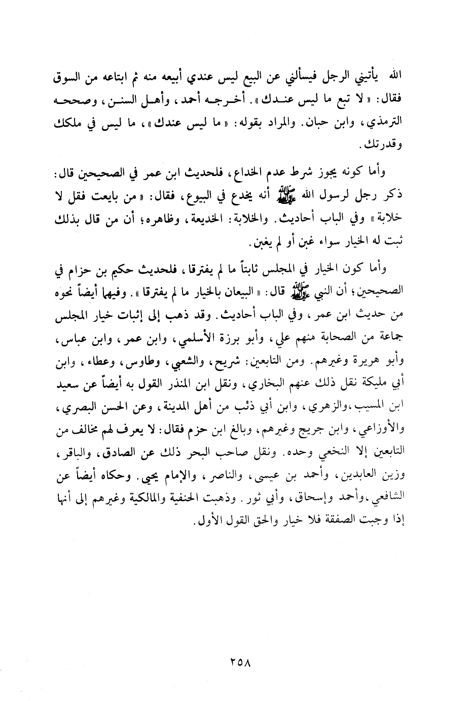 وأما كونه يجوز شرط عدم الخداع فلحديث ابن عمر في الصحيحين قال: "ذكر رجل لرسول الله أنه يخدع في البيوع فقال: "من بايعت فقل لا خلابة" وفي الباب أحاديث والخلابة الخديعة وظاهره أن من قال بذلك ثبت له الخيار سواء غبن أو لم يغبن.