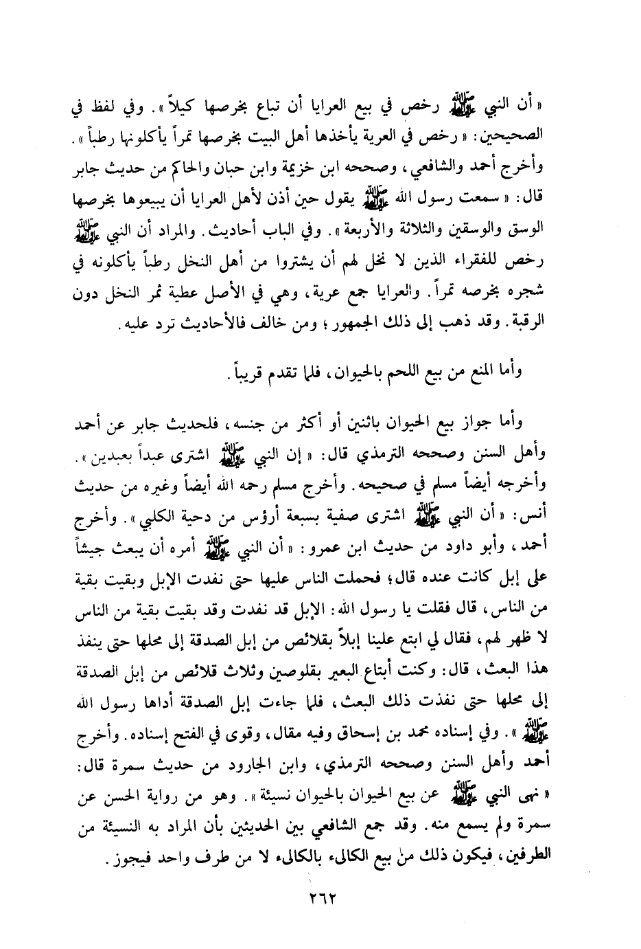 وأما جواز بيع الحيوان باثنين أو أكثر من جنسه فلحديث جابر عند أحمد وأهل السنن وصححه الترمذي قال: "إن النبي صلى الله عليه وسلم اشترى عبدا بعبدين" وأخرجه أيضا مسلم في صحيحه وأخرج مسلم رحمه الله أيضا وغيره من حديث أنس أن النبي صلى الله عليه وسلم اشترى صفية بسبعة أرؤس من دحية الكلبى" وأخرج أحمد وأبو داود من حديث ابن عمر أن النبي صلى الله عليه وسلم أمره أن يبعث جيشا على إبل كانت عنده قال: فحملت الناس عليه حتى نفذت الإبل وبقيت بقية من الناس قال: فقلت يا رسول الله الإبل قد نفذت وبقيت بقية من الناس لا ظهر لهم فقال: لي ابتع علينا إبلا بقلائص من إبل الصدقة إلى محلها حتى ينفذ هذا البعث قال: وكنت أبتاع البعير بقلوصين وثلاث قلائص من إبل الصدقة إلى محلها حتى نفذت ذلك البعث فلما جاءت إبل الصدقة أداها رسول الله صلى الله عليه وسلم" وفي إسناده محمد بن إسحاق وفيه مقال: وقوى في الفتح إسناده وأخرج أحمد وأهل السنن وصححه الترمذي وابن الجاورد من حديث سمرة قال: "نهى النبي صلى الله عليه وسلم عن بيع الحيوان بالحيوان نسيئة" وهو من رواية الحسن عن سمرة ولم يسمع منه وقد جمع الشافعي بين الحديثين بأن المراد به النسيئة من الطرفين فيكون ذلك من بيع الكاليء بالكاليء لا من طرف واحد فيجوز.