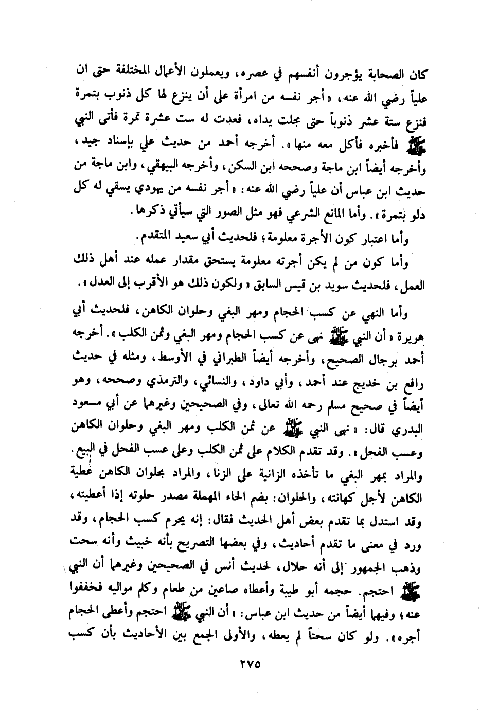 وأما النهي عن كسب الحجام ومهر البغي وحلوان الكاهن فلحديث أبي هريرة أن النبي صلى الله عليه وسلم نهى عن كسب الحجام ومهر البغي وثمن الكلب" أخرجه أحمد برجال الصحيح وأخرجه أيضا الطبراني في الأوسط ومثله في حديث رافع ابن خديج عند أحمد وأبي داود والنسائي والترمذي وصححه وهو أيضا في صحيح مسلم رحمه الله تعالى وفي الصحيحين وغيرهما عن أبي مسعود البدري قال: نهى النبي صلى الله عليه وسلم عن ثمن الكلب ومهر البغى وحلوان الكاهن وعسب الفحل" وقد تقدم الكلام على ثمن الكلب وعلى عسب الفحل في البيع والمراد بمهر البغي ما تأخذه الزانية على الزنا والمراد بحلوان الكاهن عطية الكاهن لأجل كهانته والحلوان بضم الحاء المهملة مصدر حلوته إذا أعطيته وقد استدل بما تقدم بعض أهل الحديث فقال: إنه يحرم كسب الحجام وقد ورد في معنى ما تقدم أحاديث وفي بعضها التصريح بأنه خبيث وأنه سحت وذهب الجمهور إلى أنه حلال لحديث أنس في الصحيحين وغيرهما أن النبي صلى الله عليه وسلم احتجم حجمه أو طيبه واعطاه صاعين من طعام وكلم مواليه فخففوا عنه وفيهما أيضا من حديث ابن عباس أن النبي صلى الله عليه وسلم احتجم وأعطى الحجام أجره" ولو كان سحتا لم يعطه والأولى الجمع بين الأحاديث بأن كسب