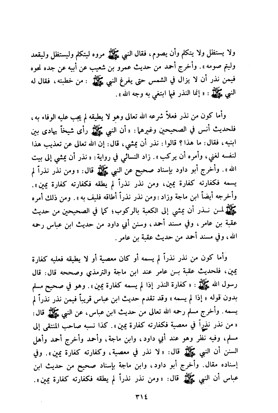 ولا يستظل ولا يتكلم وأن يصوم فقال النبي صلى الله عليه وسلم: " مروه ليتكلم وليستظل وليقعد وليتم صومه" وأخرج أحمد من حديث عمرو ابن شعيب عن أبيه عن جده نحوه فيمن نذر أن لا يزال في الشمس حتى يفرغ النبي صلى الله عليه وسلم من خطبته فقال له النبي صلى الله عليه وسلم: "إنما النذر فيما ابتغي به وجه الله".