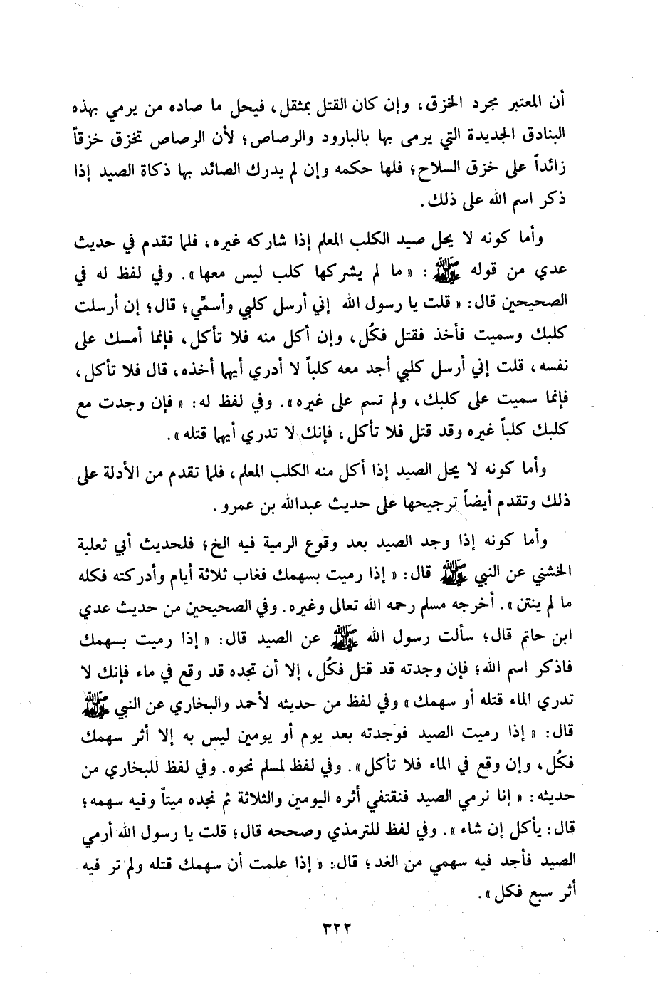 وأما كونه إذا وجد الصيد بعد وقوع الرمية فيه إلخ فلحديث أبي ثعلبة الخشنى عن النبي صلى الله عليه وسلم قال: "إذا رميت بسهمك فغاب ثلاثة أيام وأدركته فكله ما لم ينتن" أخرجه مسلم رحمه الله تعالى وغيره وفي الصحيحين من حديث عدي بن حاتم قال: "سألت رسول الله صلى الله عليه وسلم عن الصيد قال: إذا رميت بسهمك فاذكر الله فإن وجدته قد قتل فكل إلا أن تجده قد وقع في ماء فإنك لا تدري الماء قتله أو سهمك" وفي لفظ من حديث لأحمد والبخارى عن النبي صلى الله عليه وسلم قال: "إذا رميت الصيد فوجدته بعد يوم أو يومين ليس به إلا أثر سهمك فكل وإن وقع في الماء فلا تأكل" وفي لفظ لمسلم نحوه وفي لفظ للبخارى من حديثه "إنا نرمي الصيد فنقتفى أثره اليومين والثلاثة ثم نجده ميتا وفيه سهمه قال: يأكل إن شاء" وفي لفظ للترمذى وصححه قال: قلت يا رسول الله أرمى الصيد فأجد فيه سهمي من الغد قال: " إذا علمت أن سهمك قتله ولم تر فيه أثر سبع فكل"