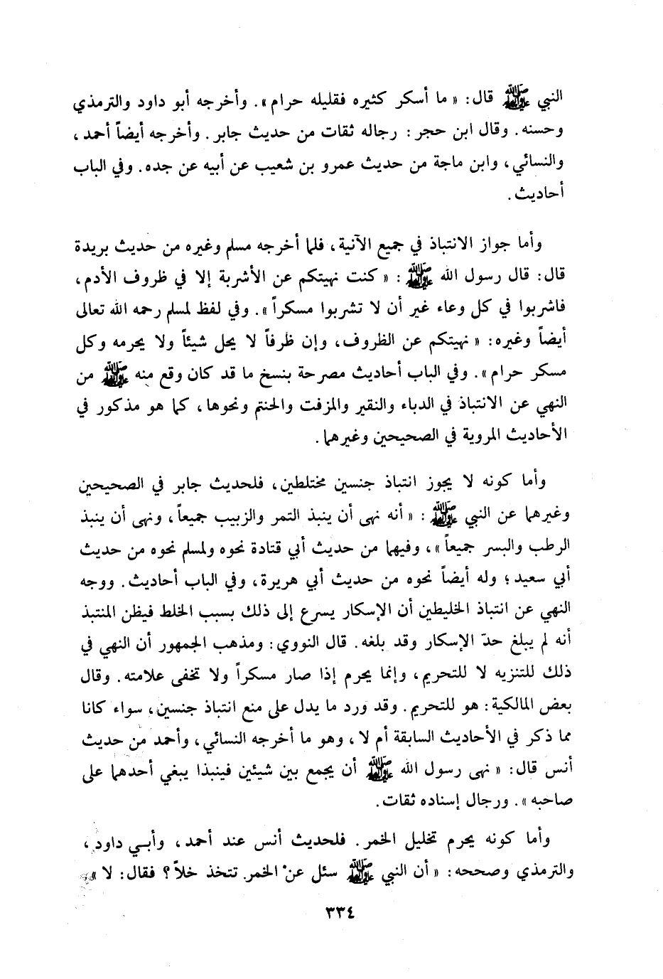 النبي صلى الله عليه وسلم قال: "ما أسكر كثيره فقليله حرام" وأخرجه أبو داود والترمذي وحسنة وقال: ابن حجر رجاله ثقات من حديث جابر وأخرجه أيضا أحمد والنسائي وابن ماجه ثم حديث عمرو بن شعيب عن أبيه عن جده وفي الباب أحاديث.