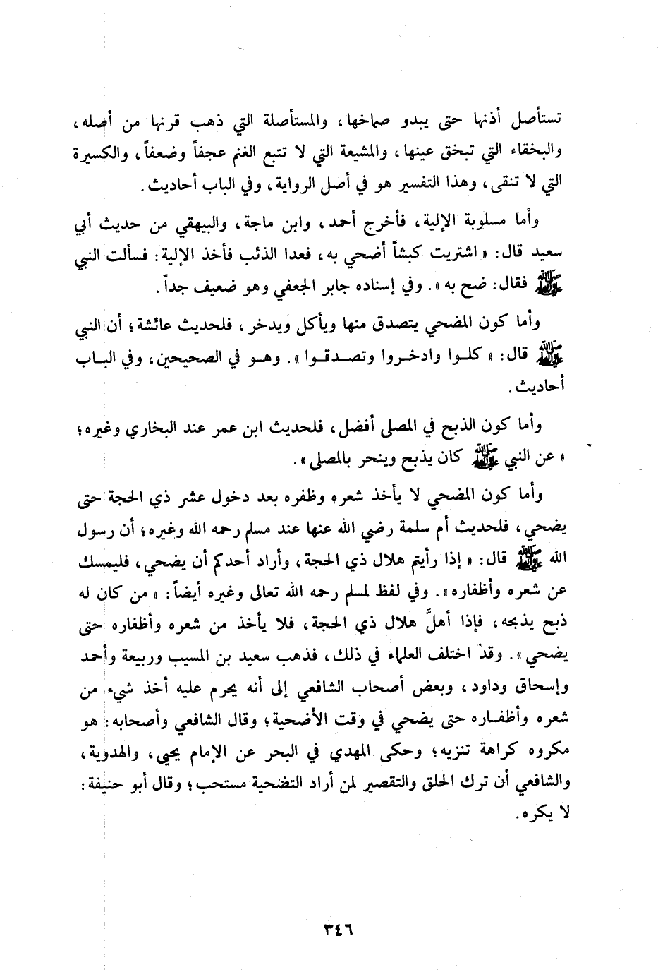 تستأصل أذنها حتى يبدو صماخها والمستأصلة التى ذهب قرنها من أصله والبخقاء التى تبخق عينها والمشيعة التى لا تتبع الغنم عجفا وضعفا والكسيرة التى لا تنقى وهذا التفسير هو في أصل الرواية وفي الباب أحاديث. وأما مسلوبة الإلية فأخرج أحمد وابن ماجه والبيهقى من حديث أبي سعيد قال: "اشتريت كبشا أضحى به فعدا الذئب فأخذ الإلية فسألت النبي صلى الله عليه وسلم فقال: "ضح به" وفي إسناده جابر الجعفي وهو ضعيف جدا.