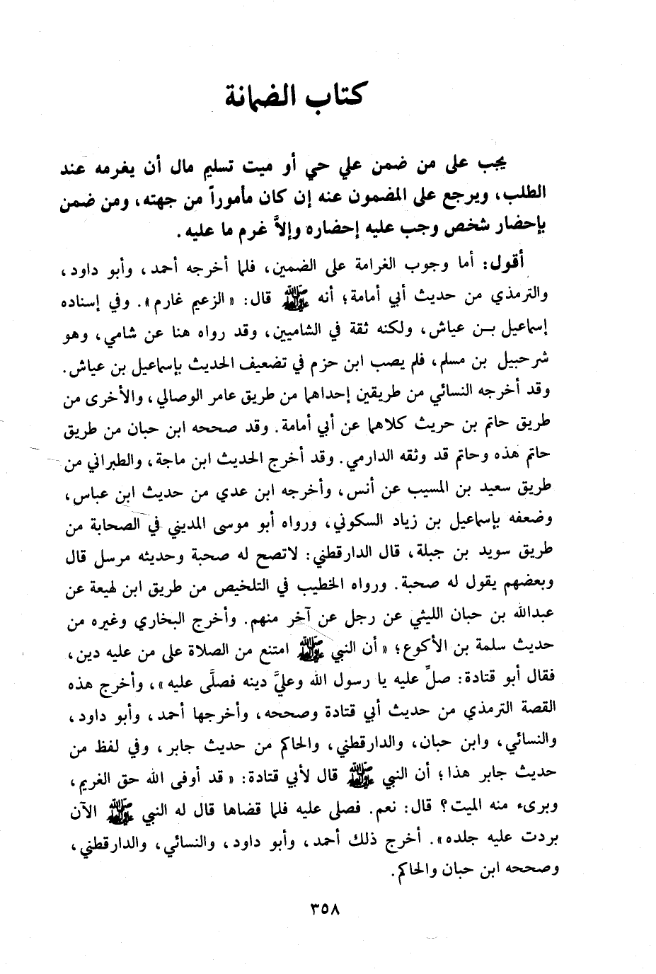 أقول: أما وجوب الغرامة على الضمين فلما أخرجه أحمد وأبو داود والترمذي من حديث أبي أمام أنه صلى الله عليه وسلم قال: "الزعيم غارم" وفي إسناده إسماعيل بن عياش ولكنه ثقة في الشاميين وقد رواه هنا عن شامي وهو شرحبيل بن مسلم فلم يصب ابن حزم في تضعيف الحديث بإسماعيل ابن عياش وقد أخرجه النسائي من طريقين إحداهما من طريق عامر الوصالي والأخرى من طريق حاتم بن حريث كلاهما عن أبي أمامة وقد صححه ابن حبان من طريق حاتم هذه وحاتم قد وثقه الدارمي وقد أخرج الحديث ابن ماجه والطبراني من طريق سعيد بن المسيب عن أنس وأخرجه ابن عدي من حديث ابن عباس وضعفه بإسماعيل بن زياد السكوني ورواه أبو موسى المديني في الصحابة من طريق سويد بن جبلة قال: الدارقطني لا تصح له صحبة وحديثه مرسل قال: وبعضهم يقول له صحبة ورواه الخطيب في التلخيص من طريق ابن لهيعة عن عبد الله بن حبان الليثي عن رجل عن آخر منهم وأخرج البخاري وغيره من حديث سلمة بن الأكوع أن النبي صلى الله عليه وسلم امتنع من الصلاة على من عليه دين فقال: أبو قتادة صلِّ عليه يا رسول الله وعلي دينه فصلى عليه وأخرج هذه القصة الترمذي من حديث أبي قتادة وصححه وأخرجها أحمد وأبو داود والنسائي وابن حبان والدارقطني والحاكم من حديث جابر وفي لفظ من حديث جابر هذا أن النبي صلى الله عليه وسلم قال: لأبي قتادة: "قد أوفى الله حق الغريم وبرء منه الميت" قال: نعم فصلى عليه فلما قضاهما قال: له النبي صلى الله عليه وسلم: "الآن بردت عليه جلده" أخرج ذلك أحمد وأبو داود والنسائي والدارقطني وصححه ابن حبان والحاكم.