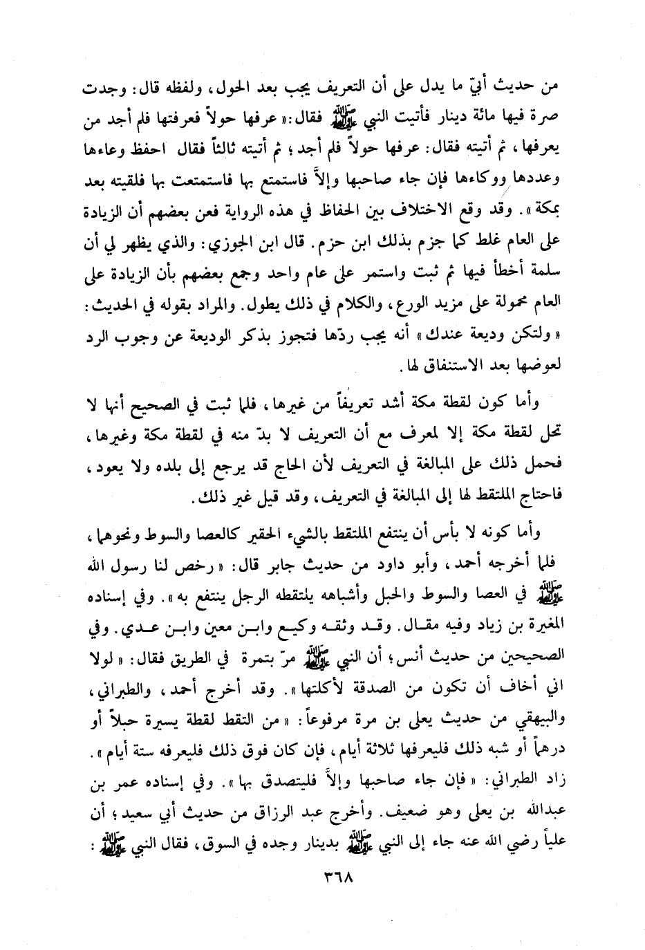 من حديث أبي ما يدل على أن التعريف يجب بعد الحول ولفظه قال: وجدت صرة فيها مائة دينار فأتيت النبي صلى الله عليه وسلم فقال: "عرفها" فعرفتها فلم أجد من يعرفها ثم أتيته فقال: عرفها حولا فلم أجد ثم أتيته ثالثا فقال: "احفظ وعاءها وعددها ووكاءها فإن جاء صاحبها وإلا فاستمتع بها" فاستمتعت بها فلقيته بعد بمكة وقد وقع الخلاف بين الحفاظ في هذه الرواية فعن بعضهم بعضهم أن الزيادة على العام غلط كما جزم بذلك ابن حزم قال ابن الجوزي والذي يظهر لي أن سلمة أخطأ فيها ثم ثبت واستمر على عام واحد وجمع بعضهم بأن الزيادة على العام محمولة على مزيد الورع والكلام في ذلك يطول والمراد بقوله: في الحديث ولتكن وديعة عندك أنه يجب ردها فتجوز بذكر الوديعة عن وجوب الرد لعوضها بعد الإستنفاق لها.