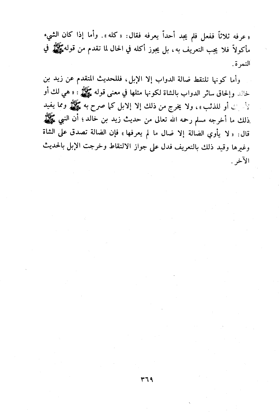 وأما كونها تلتقط ضالة الدواب إلا الإبل فللحديث المتقدم عن زيد بن خالد وإلحاق سائر الدواب بالشاة لكونها مثلها في معنى قوله صلى الله عليه وسلم "هي لك أو لأخيك أو للذئب" ولا يخرج من ذلك إلا الإبل كما صرح به صلى الله عليه وسلم ومما يفيد ذلك ما أخرجه مسلم رحمه الله تعالى من حديث زيد ابن خالد أن النبي صلى الله عليه وسلم قال: " لا يأوي الضالة إلا ضال ما لم يعرفها" فإن الضالة تصدق على الشاة وغيرها وقيد ذلك بالتعريف فدل على جواز الإلتقاط وخرجت الإبل بالحديث الآخر.
