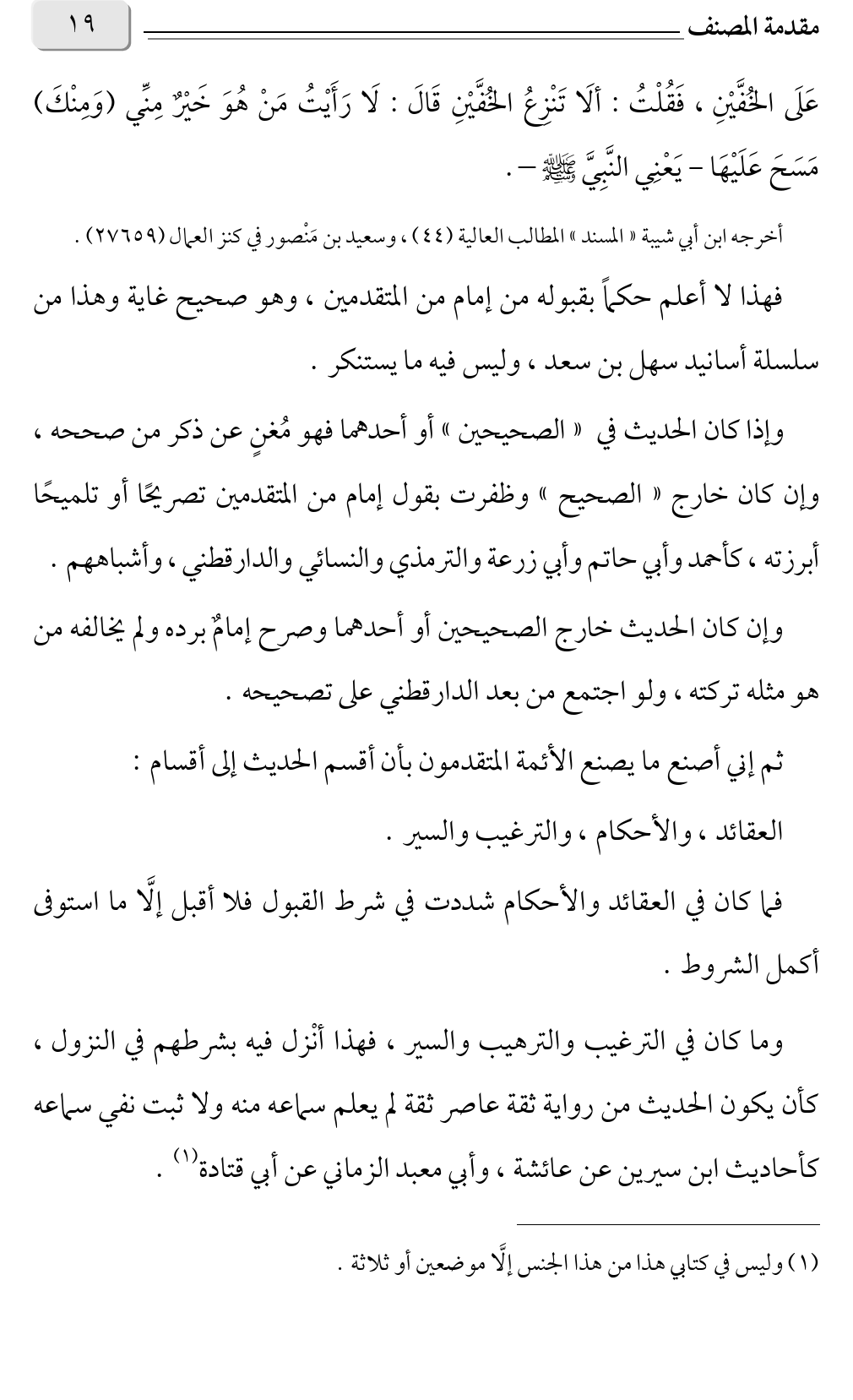 ثم إني أصنع ما يصنع الأئمة المتقدمون بأن أقسم الحديث إلى أقسام: