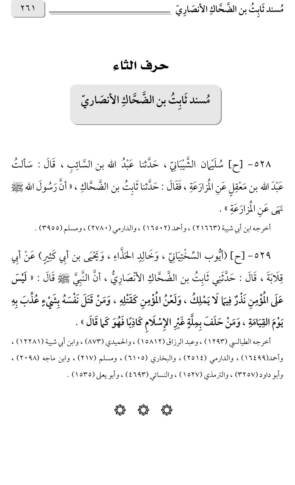 مُسند ثَابِتُ بن الضَّحَّاكِ الأنصَارِيّ