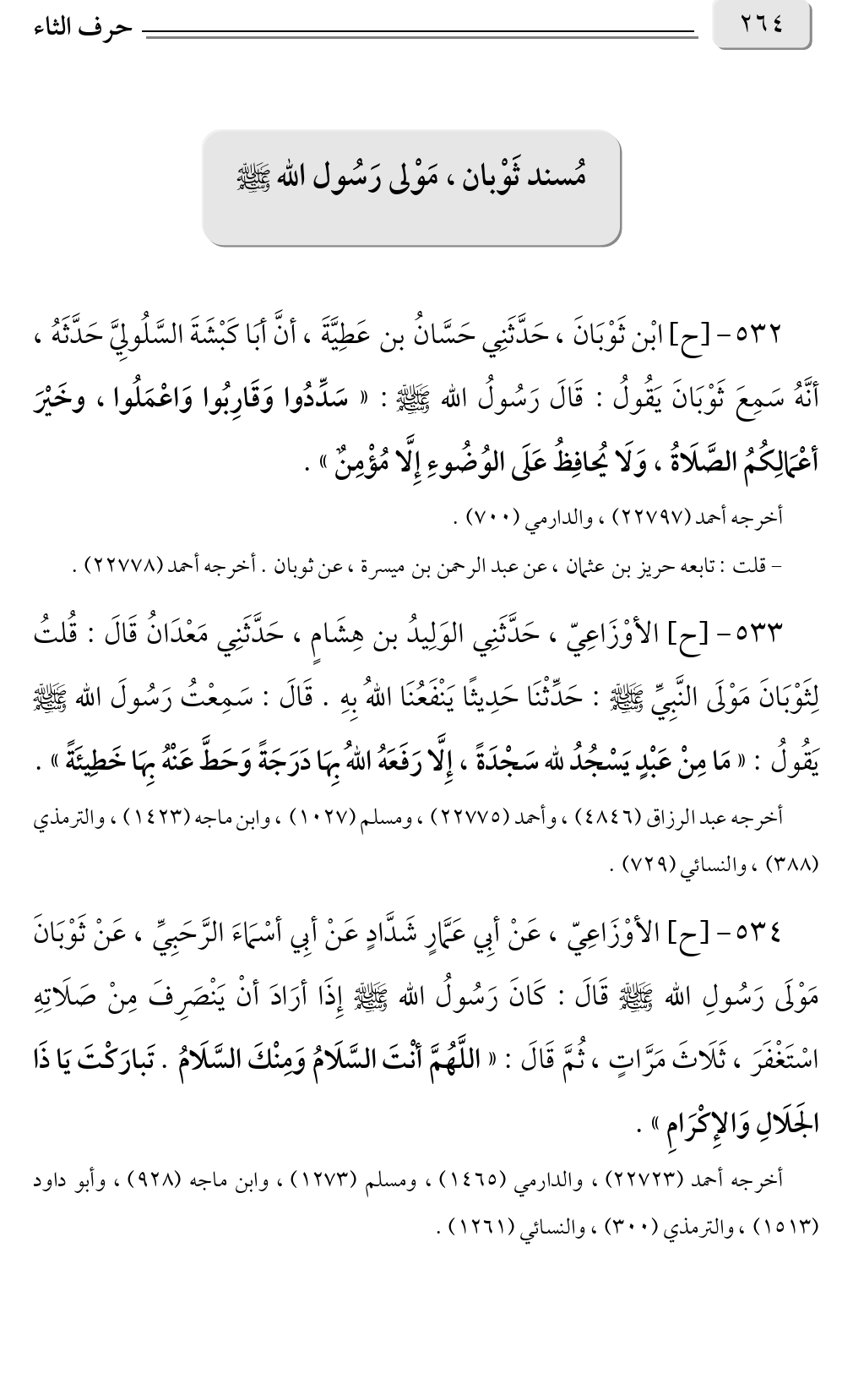 مُسند ثَوْبان، مَوْلى رَسُول الله صلى الله عليه وسلم