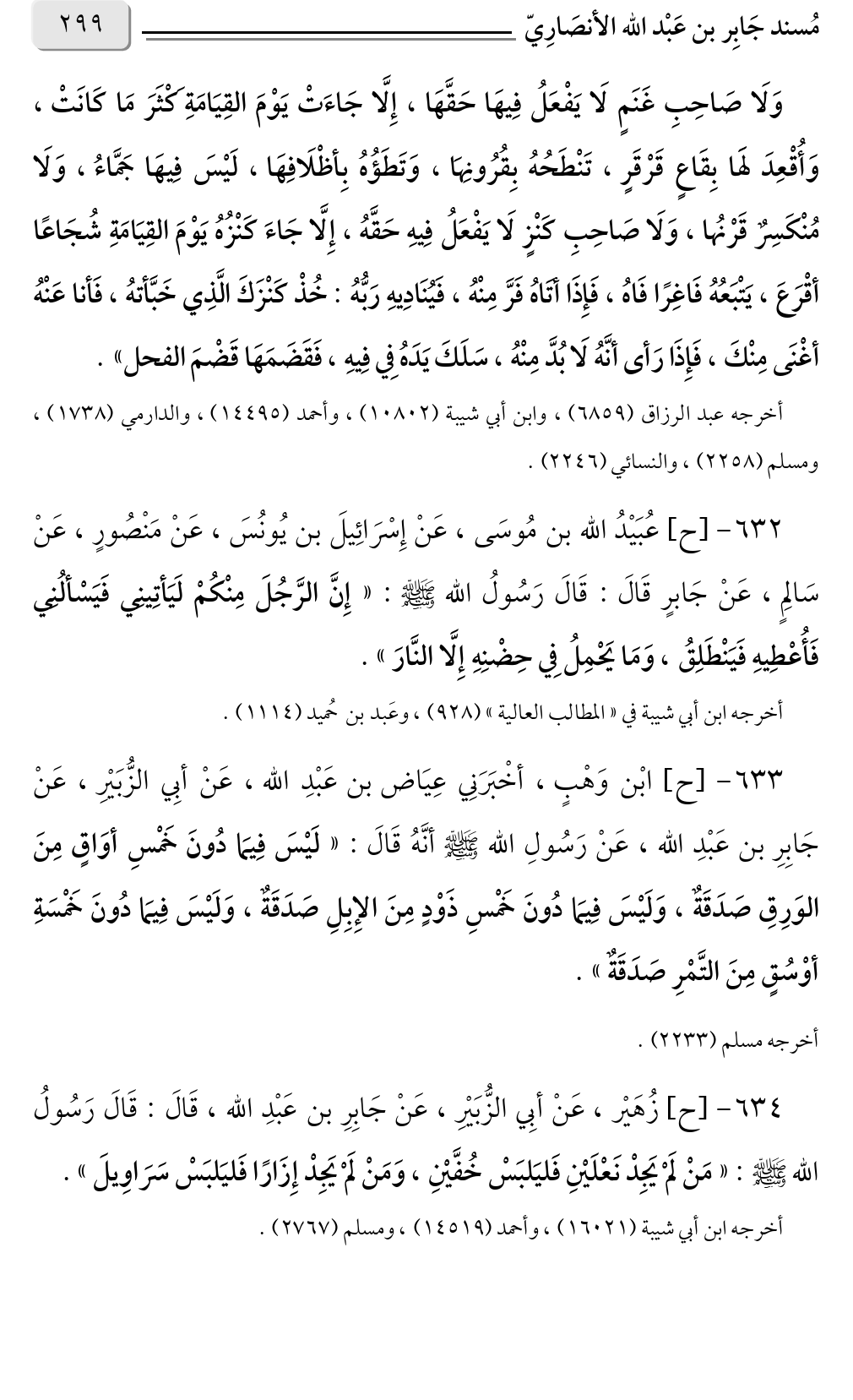 ٦٣٣ - [ح] ابْن وَهْبٍ، أخْبَرَنِي عِيَاض بن عَبْدِ الله، عَنْ أبِي الزُّبَيْرِ، عَنْ جَابِرِ بن عَبْدِ الله، عَنْ رَسُولِ الله صلى الله عليه وسلم أنَّهُ قَالَ: «لَيْسَ فِيمَا دُونَ خَمْسِ أوَاقٍ مِنَ الوَرِقِ صَدَقَةٌ، وَلَيْسَ فِيمَا دُونَ خَمْسِ ذَوْدٍ مِنَ الإِبِلِ صَدَقَةٌ، وَلَيْسَ فِيمَا دُونَ خَمْسَةِ أوْسُقٍ مِنَ التَّمْرِ صَدَقَةٌ».