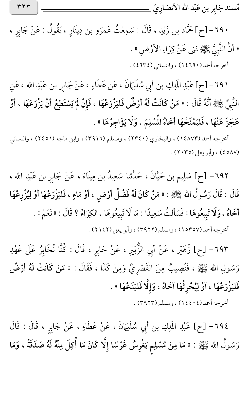٦٩٠ - [ح] حَمَّاد بن زَيْدٍ، قَالَ: سَمِعْتُ عَمْرَو بن دِينَارٍ، يَقُولُ: عَنْ جَابِرٍ، «أنَّ النَّبِيَّ صلى الله عليه وسلم نَهَى عَنْ كِرَاءِ الأرْضِ».