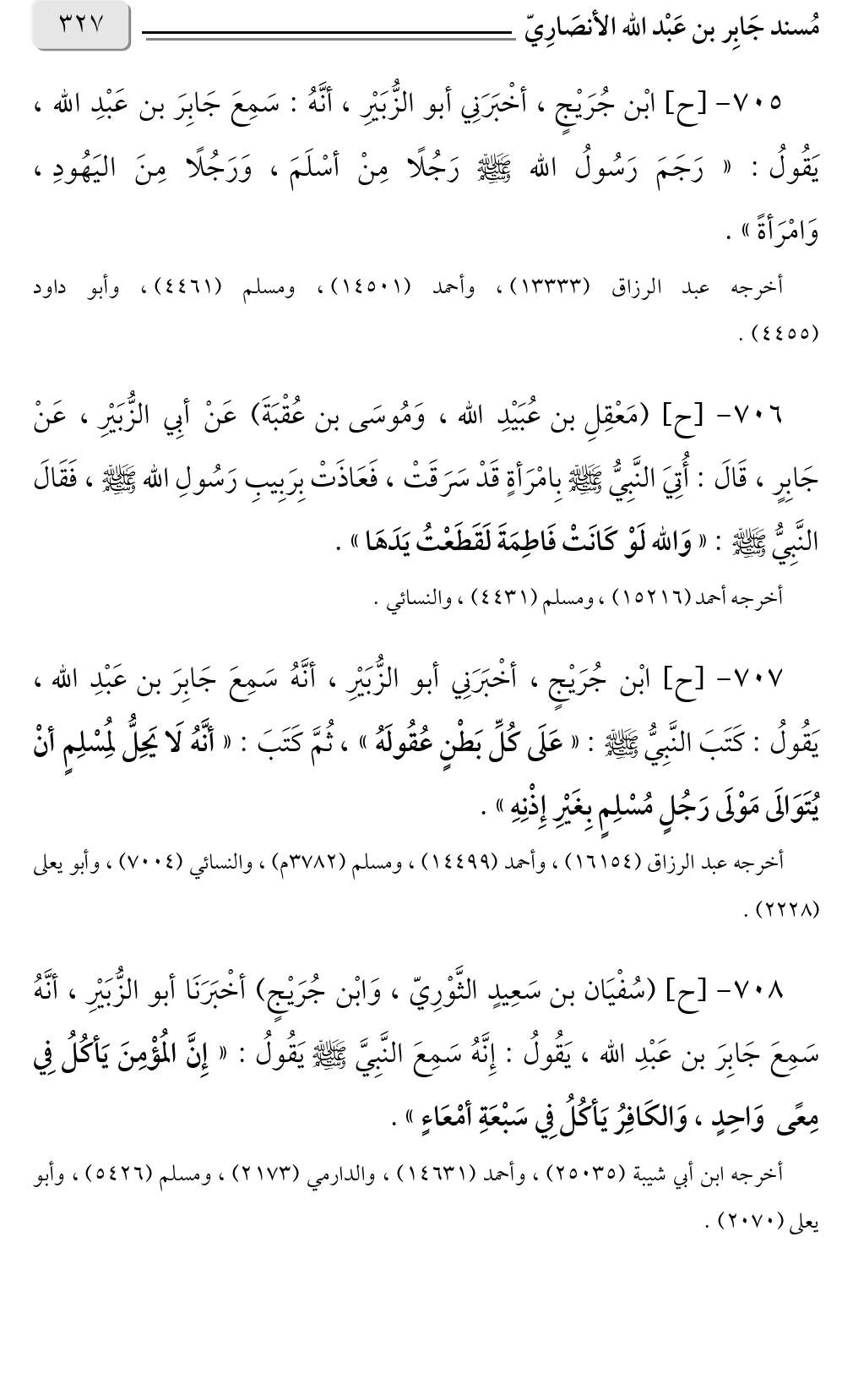 ٧٠٥ - [ح] ابْن جُرَيْجٍ، أخْبَرَنِي أبو الزُّبَيْرِ، أنَّهُ: سَمِعَ جَابِرَ بن عَبْدِ الله، يَقُولُ: «رَجَمَ رَسُولُ الله صلى الله عليه وسلم رَجُلًا مِنْ أسْلَمَ، وَرَجُلًا مِنَ اليَهُودِ، وَامْرَأةً».