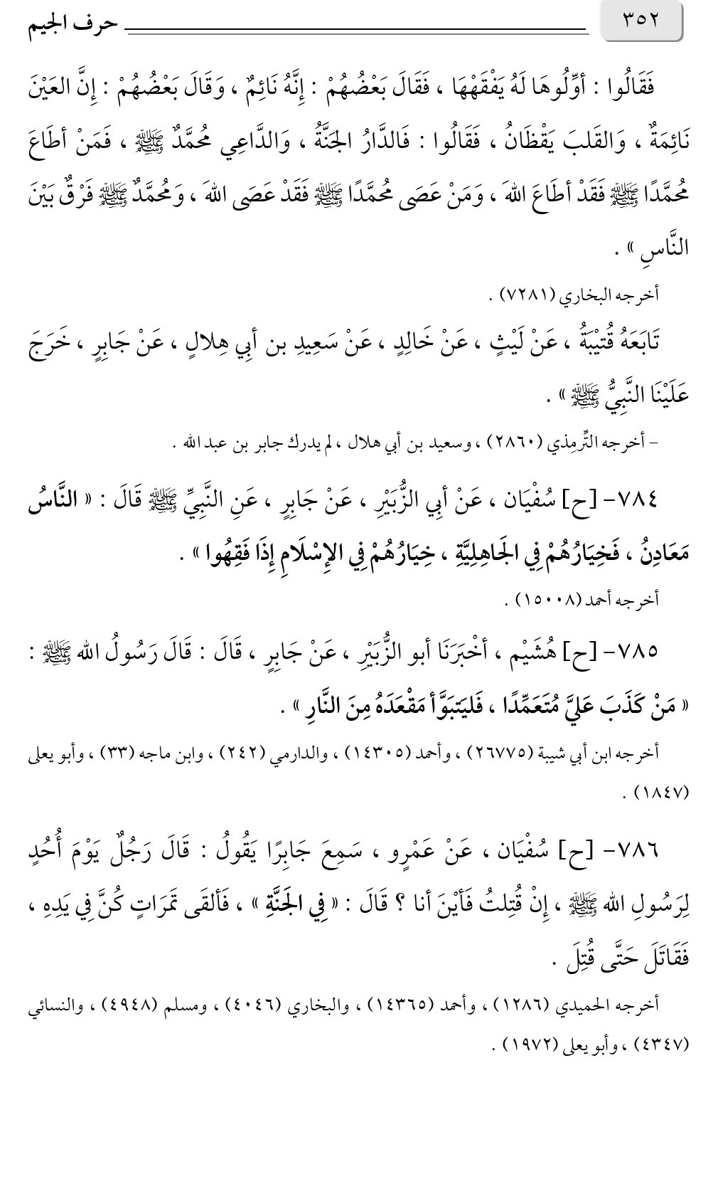 ٧٨٤ - [ح] سُفْيَان، عَنْ أبِي الزُّبَيْرِ، عَنْ جَابِرٍ، عَنِ النَّبِيِّ صلى الله عليه وسلم قَالَ: «النَّاسُ مَعَادِنُ، فَخِيَارُهُمْ فِي الجَاهِلِيَّةِ، خِيَارُهُمْ فِي الإِسْلَامِ إِذَا فَقِهُوا».