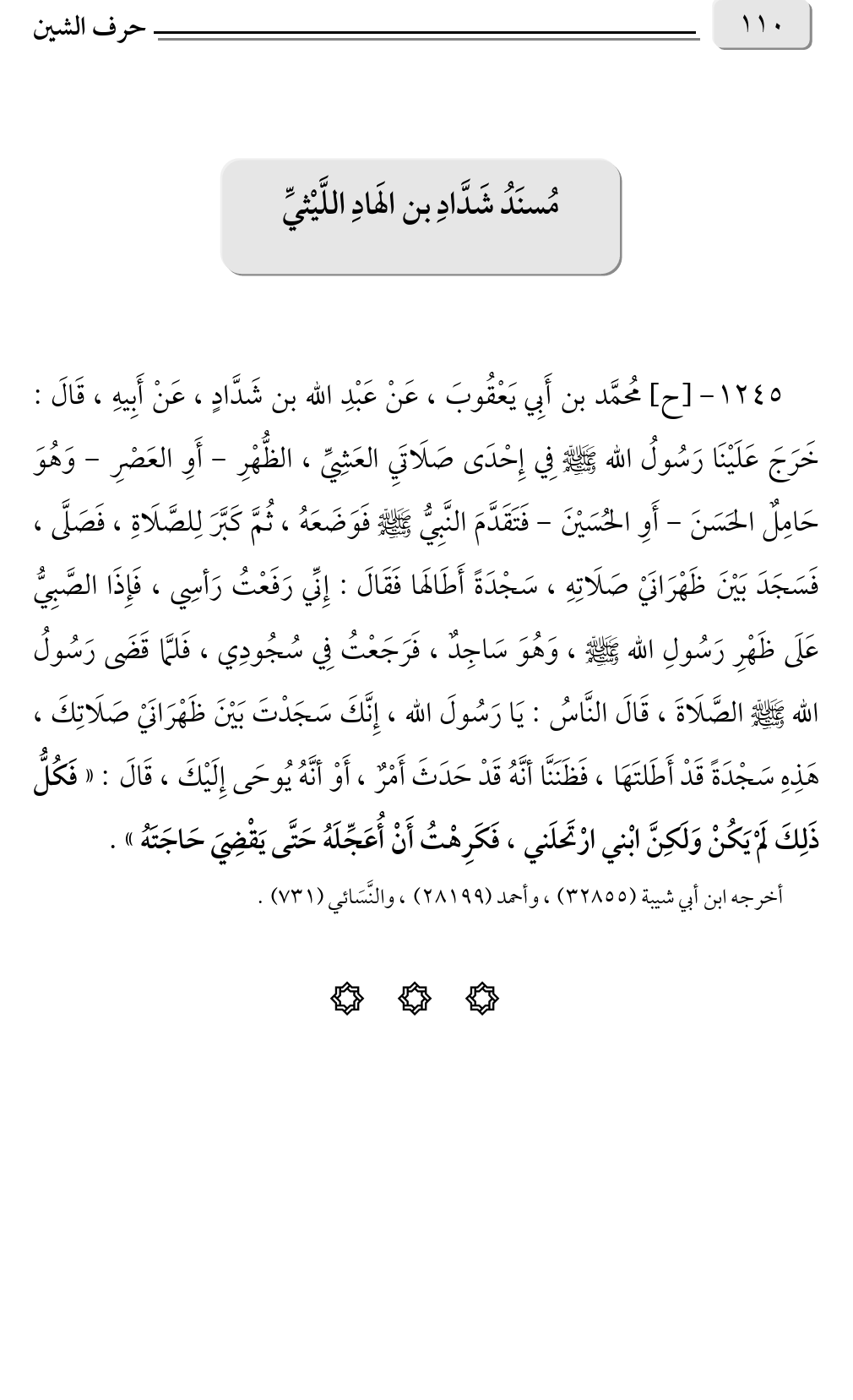 مُسنَدُ شَدَّادِ بن الَهادِ اللَّيْثيِّ