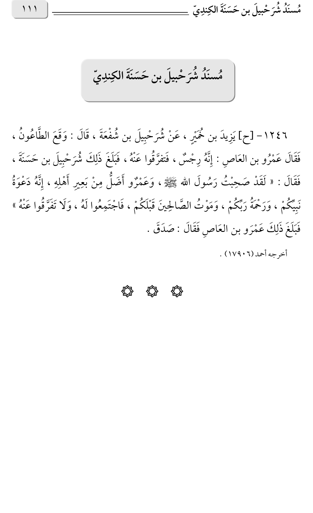 مُسنَدُ شُرَحْبيلَ بن حَسَنَةَ الكِندِيّ