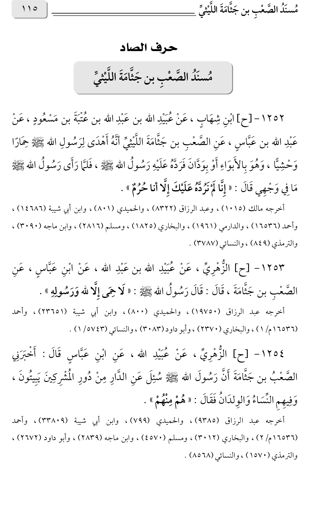 مُسنَدُ الصَّعْبِ بن جَثَّامَةَ اللَّيْثيِّ