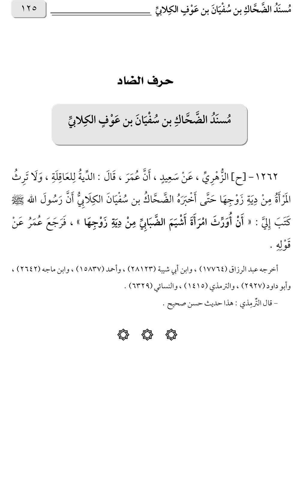 مُسنَدُ الضَّحَّاكِ بن سُفْيَانَ بن عَوْفٍ الكِلابيِّ