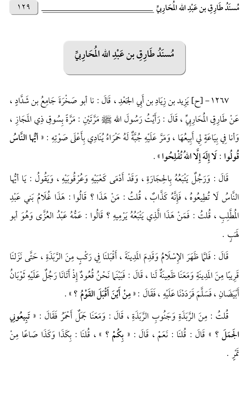 مُسنَدُ طَارِقِ بن عَبْدِ الله المُحَارِبيِّ