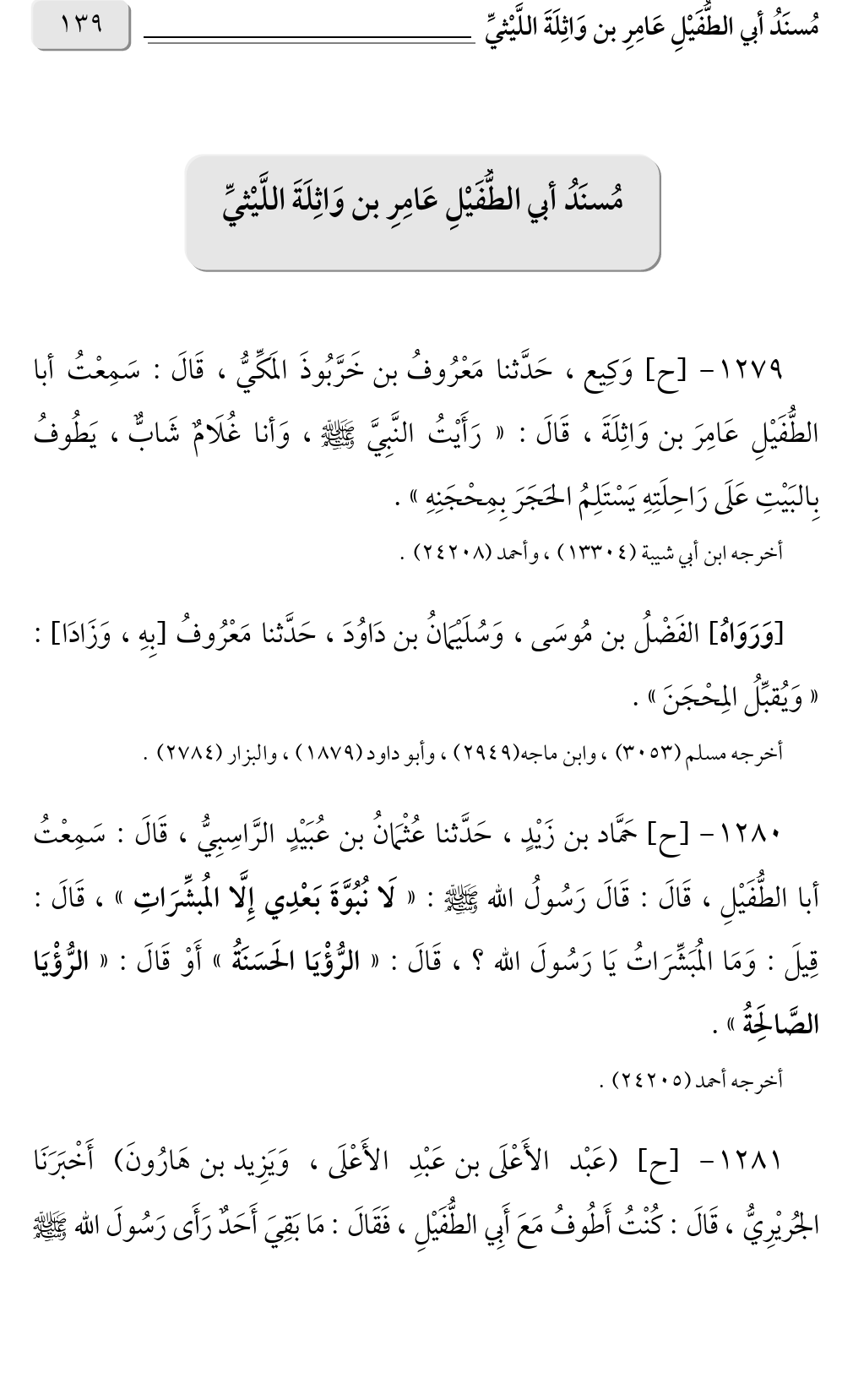 مُسنَدُ أبي الطُّفَيْلِ عَامِرِ بن وَاثِلَةَ اللَّيْثيِّ