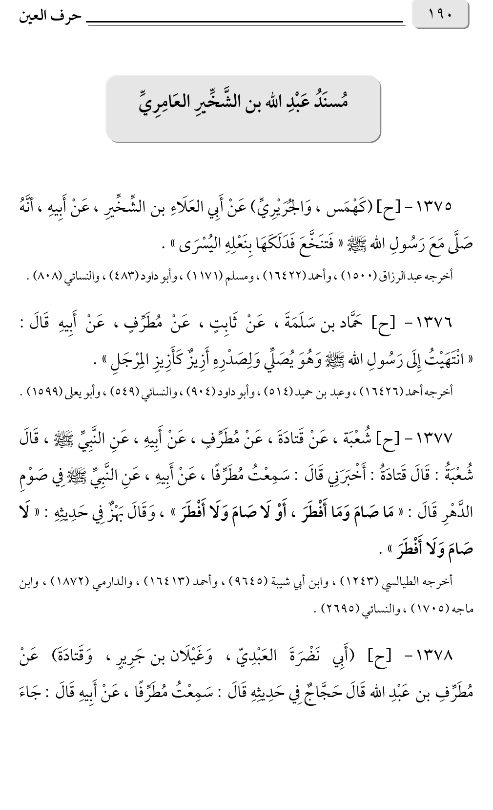 ١٣٧٨ - [ح] (أَبِي نَضْرَةَ العَبْدِيّ، وَغَيْلَان بن جَرِيرٍ، وَقَتادَةَ) عَنْ مُطَرِّفِ بن عَبْدِ الله قَالَ حَجَّاجٌ فِي حَدِيثِهِ قَالَ: سَمِعْتُ مُطَرِّفًا، عَنْ أَبِيهِ قَالَ: جَاءَ