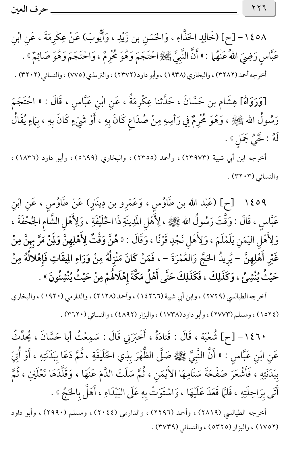١٤٥٨ - [ح] (خَالِدٍ الحَذَّاءِ، وَالحَسَنِ بن زَيْدِ، وَأَيُّوبَ) عَنْ عِكْرِمَةَ، عَنِ ابْنِ عَبَّاسٍ رَضِيَ اللهُ عَنْهُما: «أَنَّ النَّبِيَّ صلى الله عليه وسلم احْتَجَمَ وَهُوَ مُحْرِمٌ، وَاحْتَجَمَ وَهُوَ صَائِمٌ».