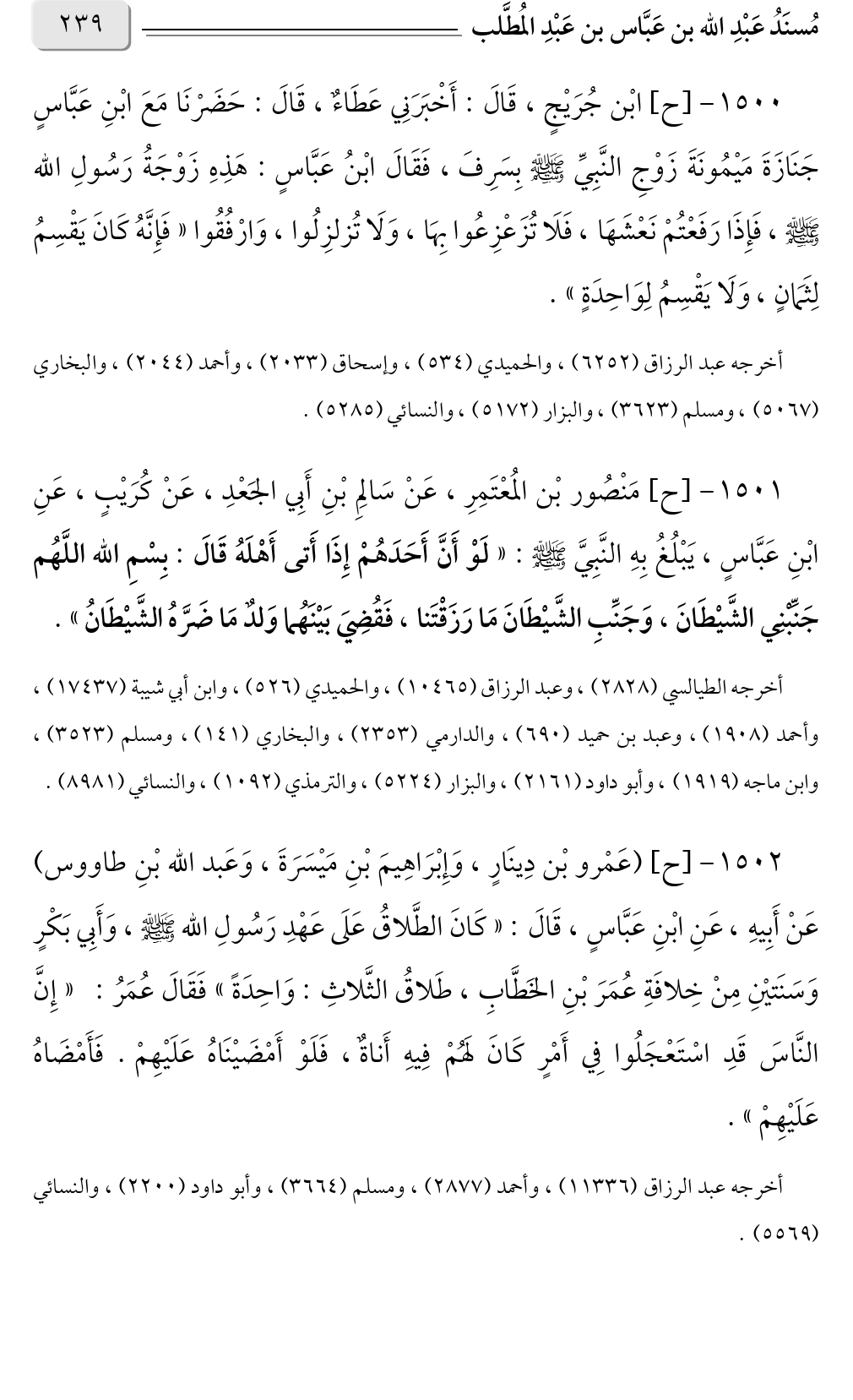 أخرجه عبد الرزاق (١١٣٣٦)، وأحمد (٢٨٧٧)، ومسلم (٣٦٦٤)، وأبو داود (٢٢٠٠)، والنسائي (٥٥٦٩).