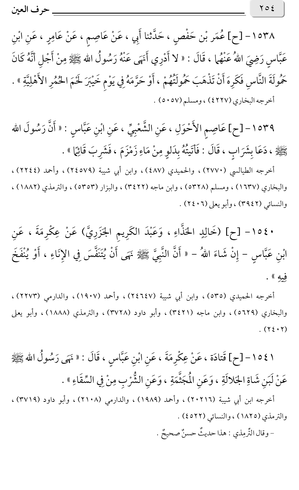 أخرجه الطيالسي (٢٧٧٠)، والحميدي (٤٨٧)، وابن أبي شيبة (٢٤٥٧٩)، وأحمد (٢٢٤٤)، والبخاري (١٦٣٧)، ومسلم (٥٣٢٨)، وابن ماجة (٣٤٢٢)، والبزار (٥٣٥٣)، والترمذي (١٨٨٢)، والنسائي (٣٩٤٢)، وأبو يعلى (٢٤٠٦).