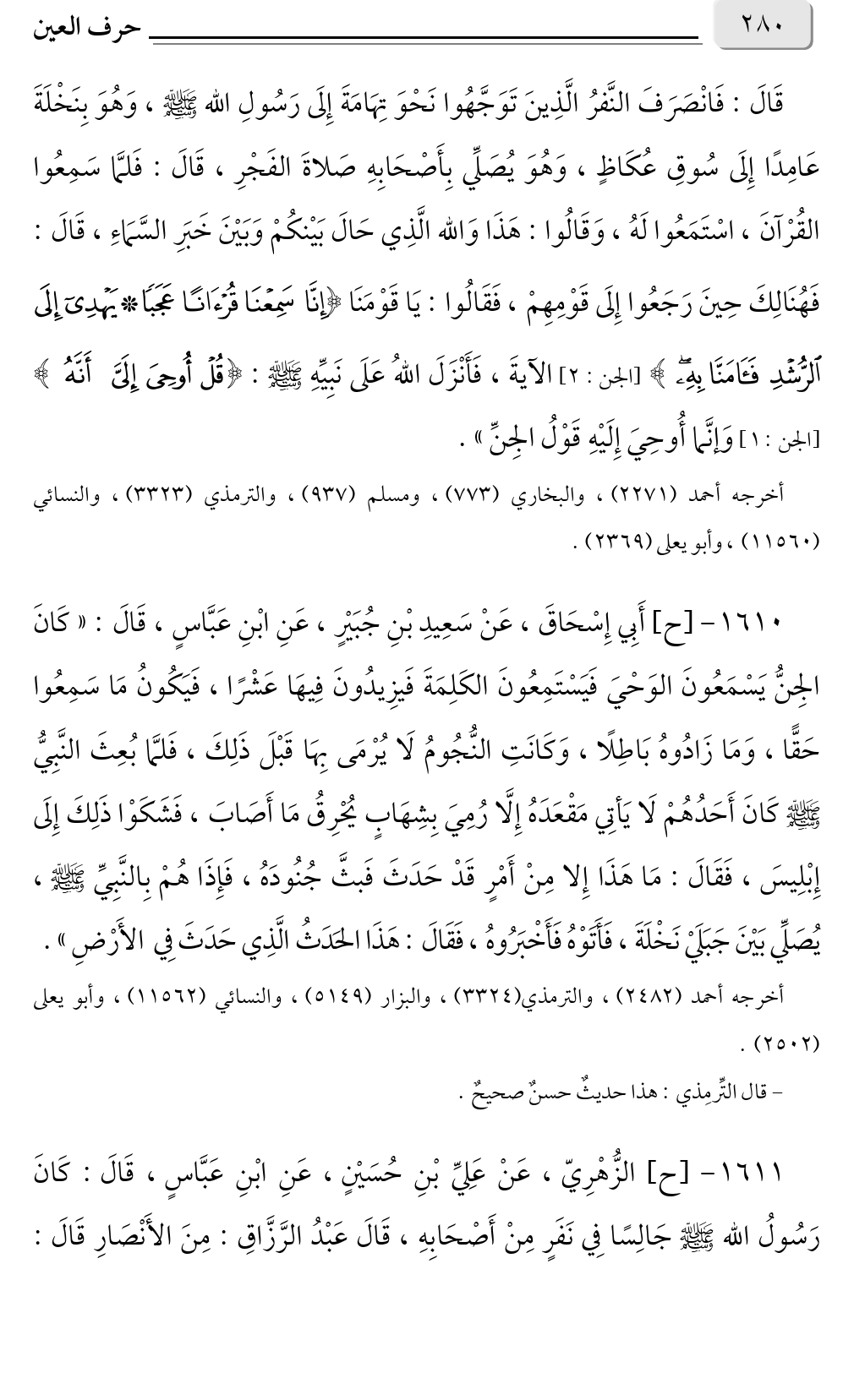 ١٦١٠ - [ح] أَبِي إِسْحَاقَ، عَنْ سَعِيدِ بْنِ جُبَيْرٍ، عَنِ ابْنِ عَبَّاسٍ، قَالَ: «كَانَ الجِنُّ يَسْمَعُونَ الوَحْيَ فَيَسْتَمِعُونَ الكَلِمَةَ فَيزِيدُونَ فِيهَا عَشْرًا، فَيَكُونُ مَا سَمِعُوا قا، وَمَا زَادُوهُ بَاطِلًا، وَكَانَتِ النُّجُومُ لَا يُرْمَى بِهَا قَبْلَ ذَلِكَ، فَلمَّا بُعِثَ النَّبِيُّ .. حَ صلى الله عليه وسلم كَانَ أَحَدُهُمْ لَا يَأتِي مَقْعَدَهُ إِلَّا رُمِيَ بِشِهَابٍ يُحْرِقُ مَا أَصَابَ، فَشَكَوْا ذَلِكَ إِلَى إِبْلِيسَ، فَقَالَ: مَا هَذَا إِلا مِنْ أَمْرٍ قَدْ حَدَثَ فَبثَّ جُنُودَهُ، فَإِذَا هُمْ بِالنَّبِيِّ صلى الله عليه وسلم، يُصَلِّي بَيْنَ جَبَلَيْ نَخْلَةَ، فَأَتَوْهُ فَأَخْبَرُوهُ، فَقَالَ: هَذَا الحَدَثُ الَّذِي حَدَثَ فِي الأَرْضِ».