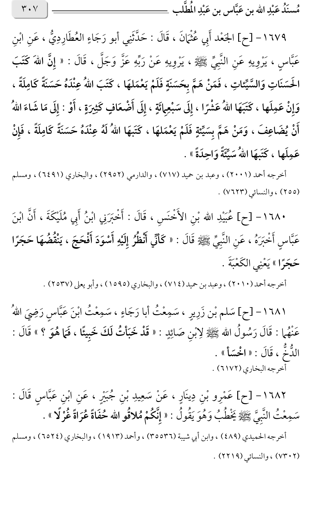 ١٦٨٠ - [ح] عُبَيْدِ الله بْنِ الأَخْنَسِ، قَالَ: أَخْبَرَنِي ابْنُ أَبِي مُلَيْكَةَ، أَنَّ ابْنَ عَبَّاسٍ أَخْبَرَهُ، عَنِ النَّبِيِّ صلى الله عليه وسلم قَالَ: «كَأنِّي أَنْظُرُ إِلَيْهِ أَسْوَدَ أَفْحَجَ، يَنْقُضُهَا حَجَرًا حَجَرًا» يَعْنِي الكَعْبَةَ.