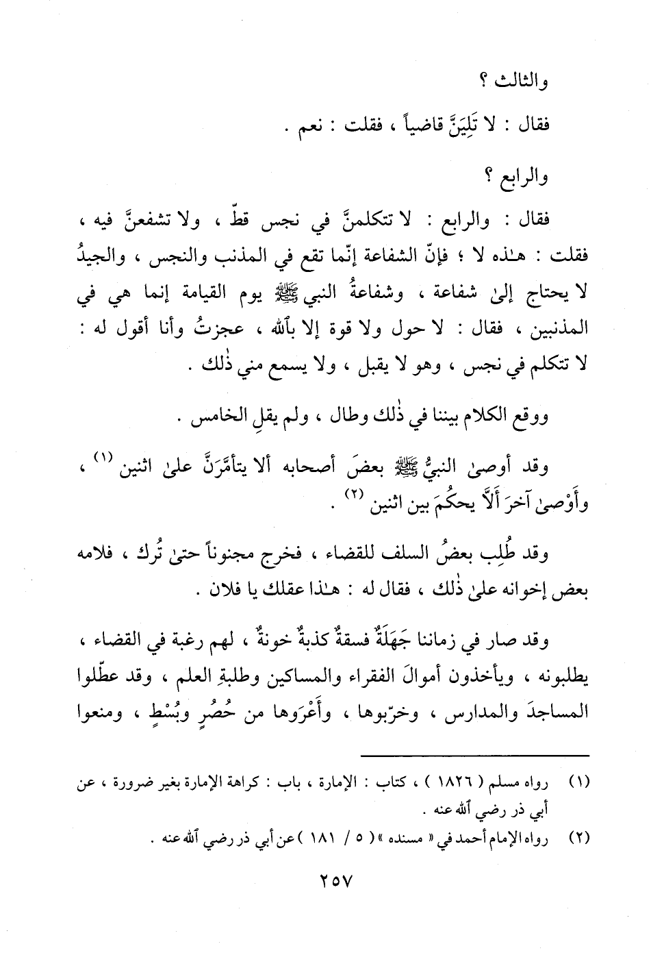 (¬1) رواه مسلم (1826)، كتاب: الإمارة، باب: كراهة الإمارة بغير ضرورة، عن أبي ذر -رضي الله عنه-.