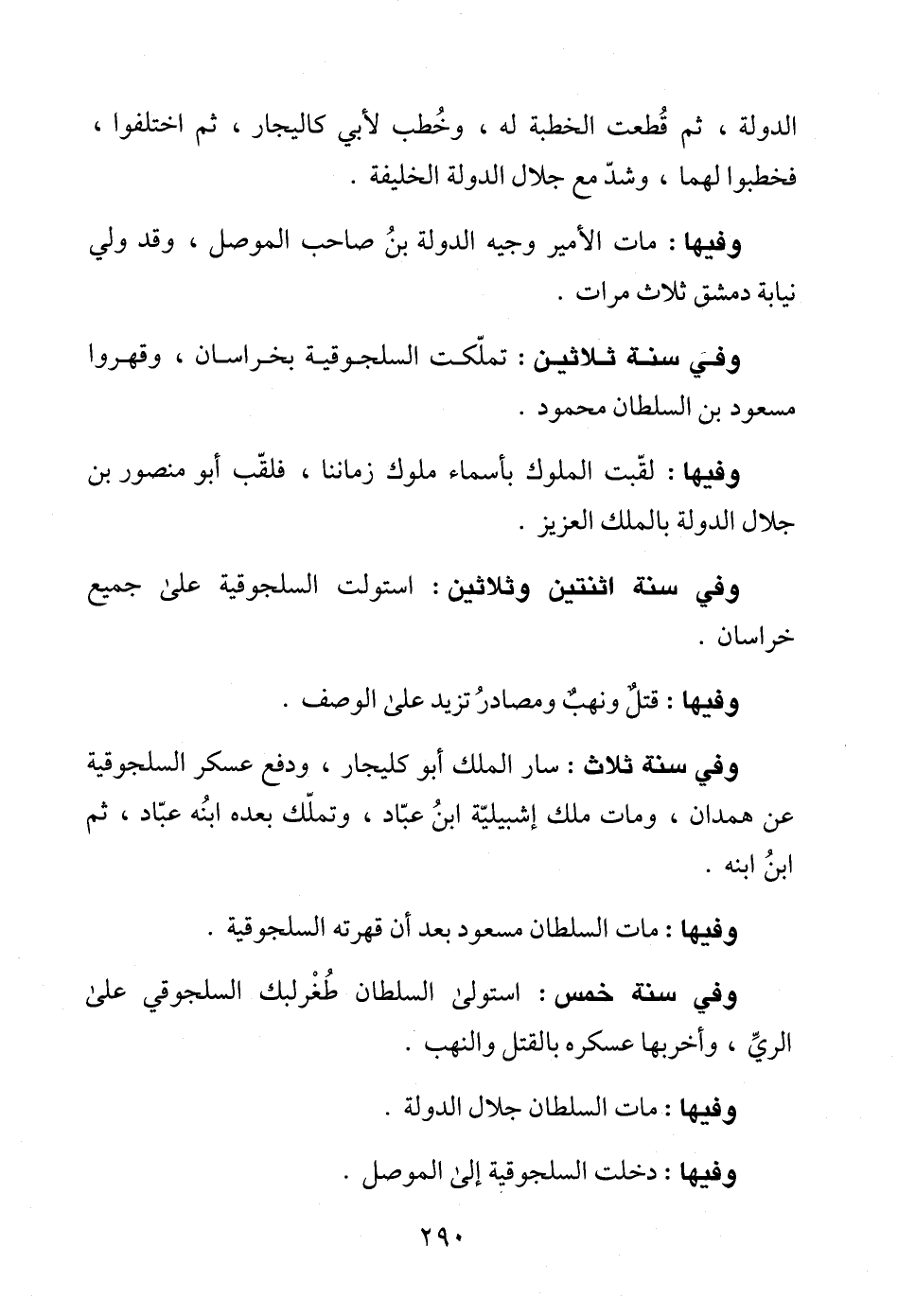 وفي سنة ثلاثين: تملّكت السلجوقية بخراسان، وقهروا مسعود بن السلطان محمود.