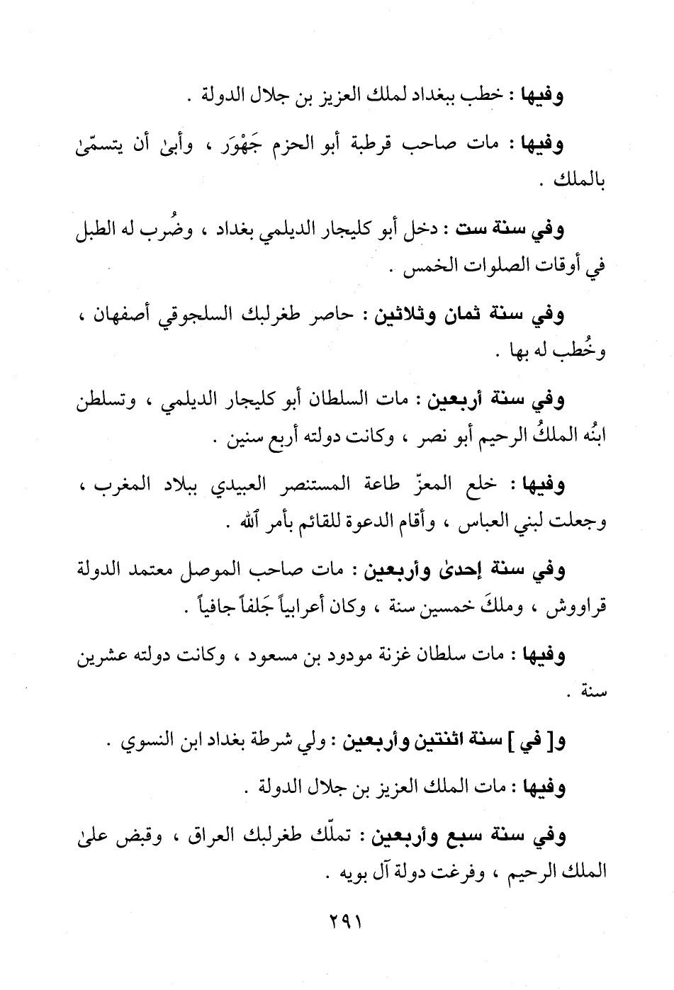 وفيها: خطب ببغداد لملك العزيز بن جلال الدولة.