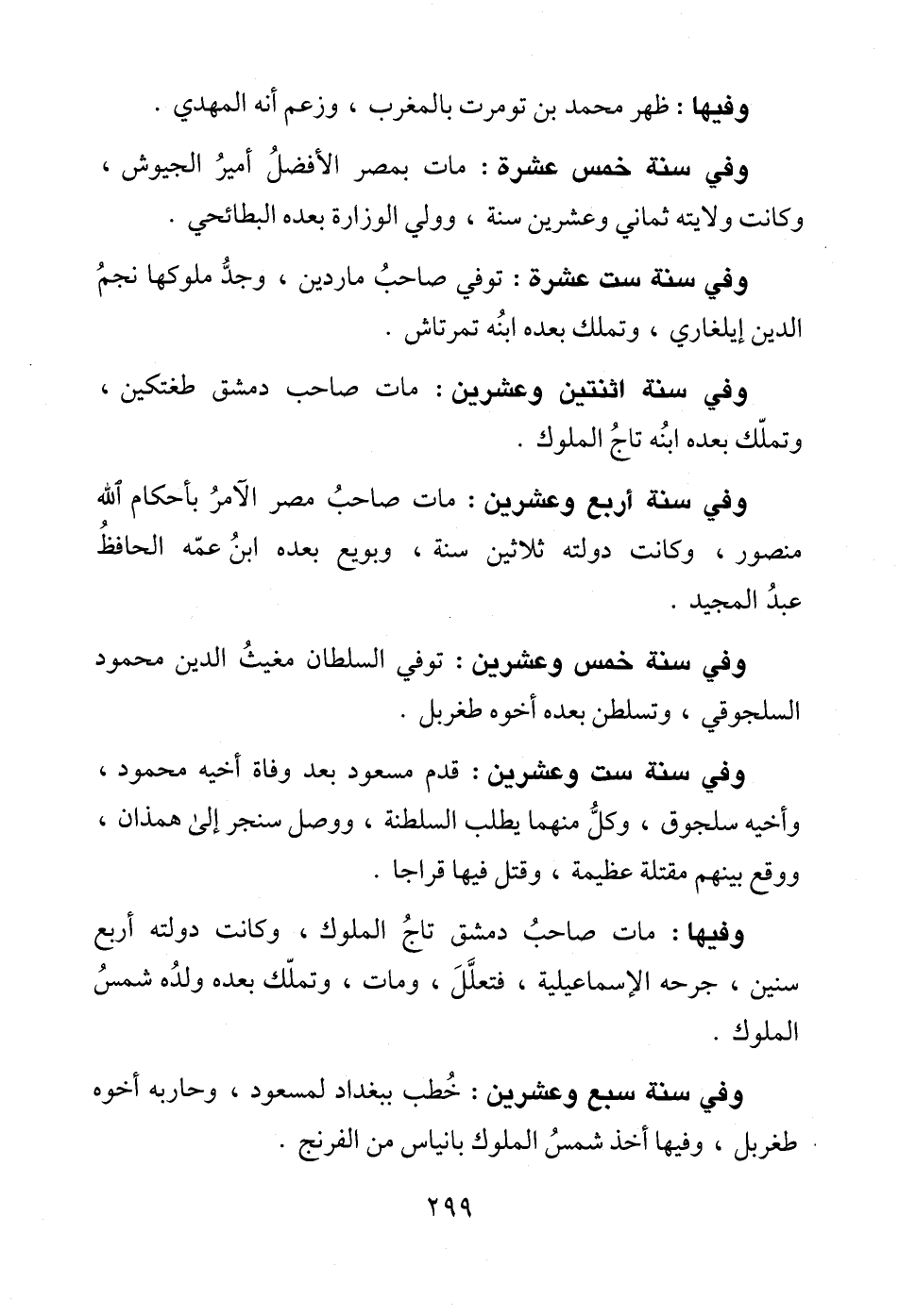 وفي سنة خمس وعشرين: توفي السلطان مغيثُ الدين محمود السلجوقي، وتسلطن بعده أخوه طغربل.