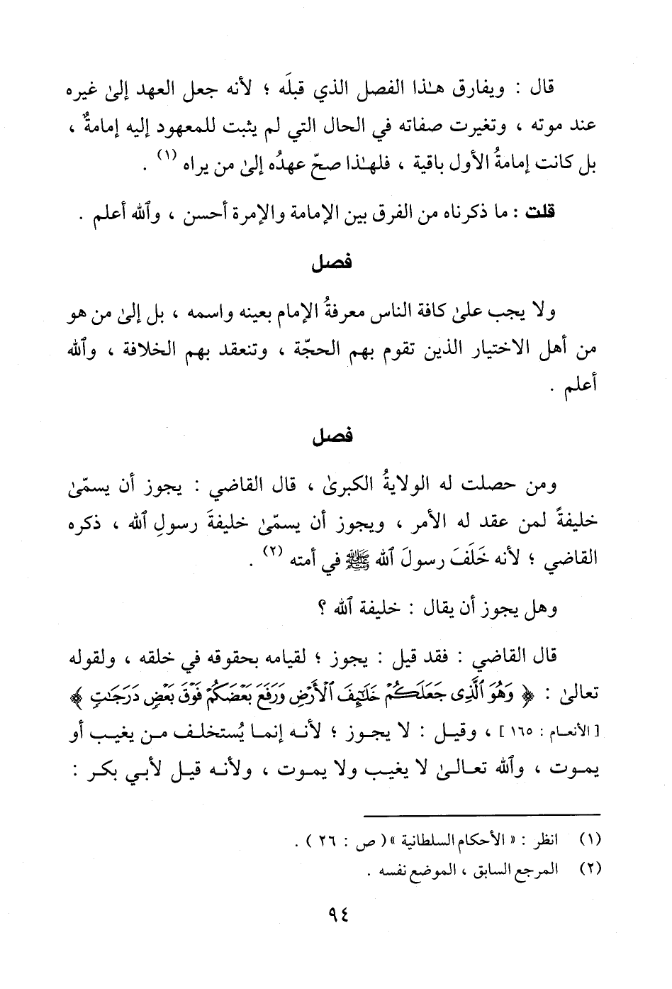 (¬1) انظر: "الأحكام السلطانية" (ص: 26).