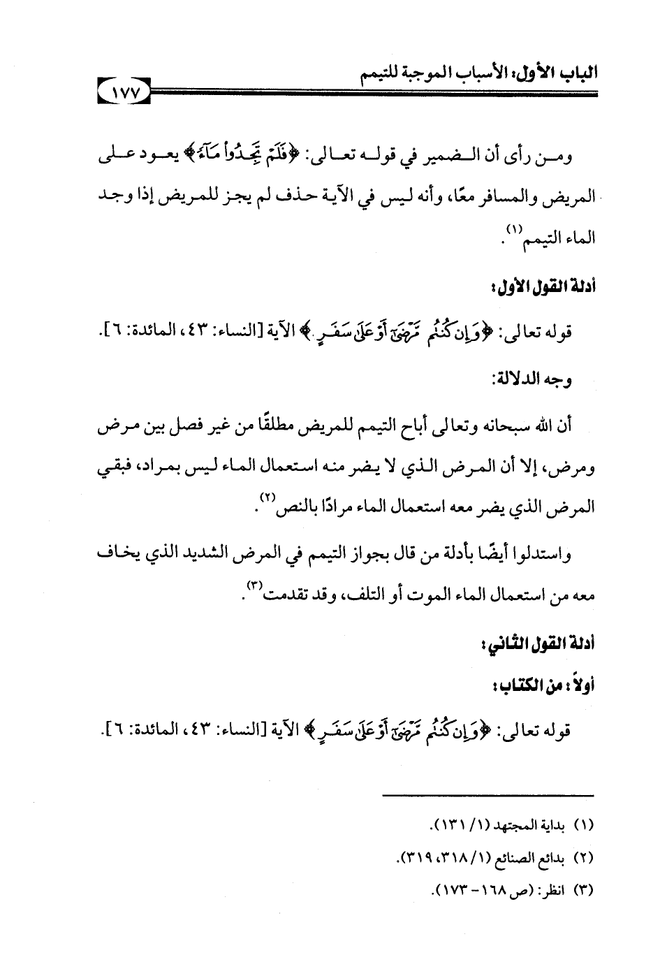 ومن رأى أن الضمير في قوله تعالى: {فَلَمْ تَجِدُوا مَاءً} يعود على المريض والمسافر معًا، وأنه ليس في الآية حذف لم يجز للمريض إذا وجد الماء التيمم (¬1).